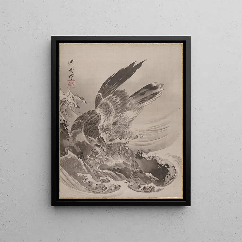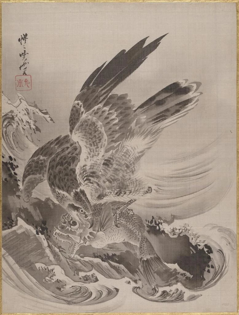 Aigle attaquant un poisson - Kawanabe Kyōsai