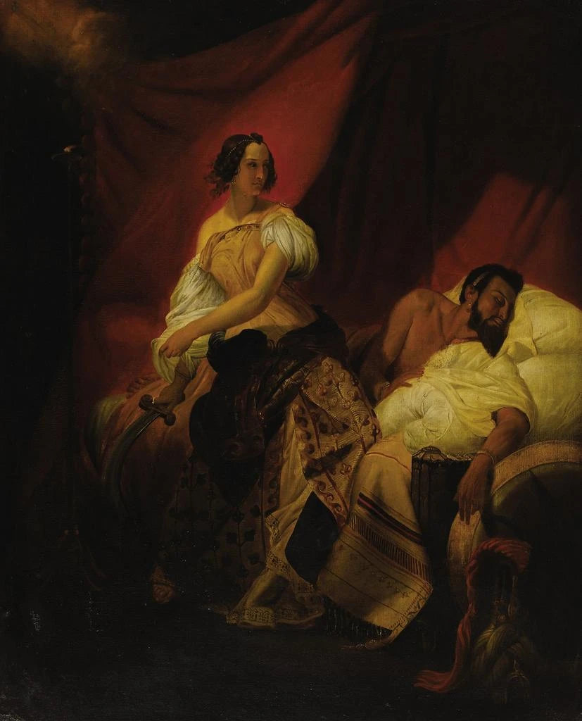 Horace Vernet, a French painter of the 19th century, is renowned for his skill in capturing dramatic and historical scenes. In his art print 'Judith', Vernet draws inspiration from the biblical story of Judith and Holopherne, a tale of courage and cunning. The dynamic composition of this painting demonstrates the influence of Romanticism, a movement that valued emotion and individualism. Vernet employs a rich palette and play of light to emphasize the tension of the scene, highlighting the expressions of the characters. This art print reflects not only Vernet's talent but also his role in the evolution of French art in the 19th century. Today, 'Judith' finds a prominent place in contemporary interiors, adding a touch of elegance and historical depth. We invite you to discover this art print reproduction on Artem Legrand.