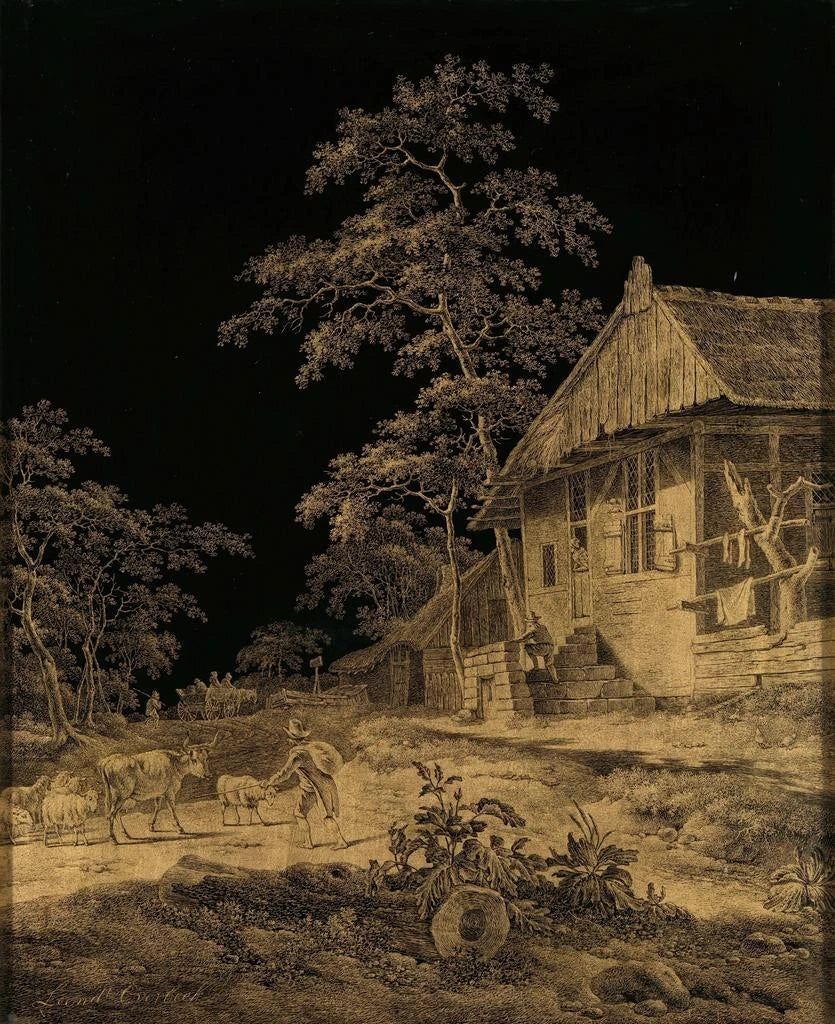 Mural painting depicting a shepherd on a farm, by Leendert Overbeek