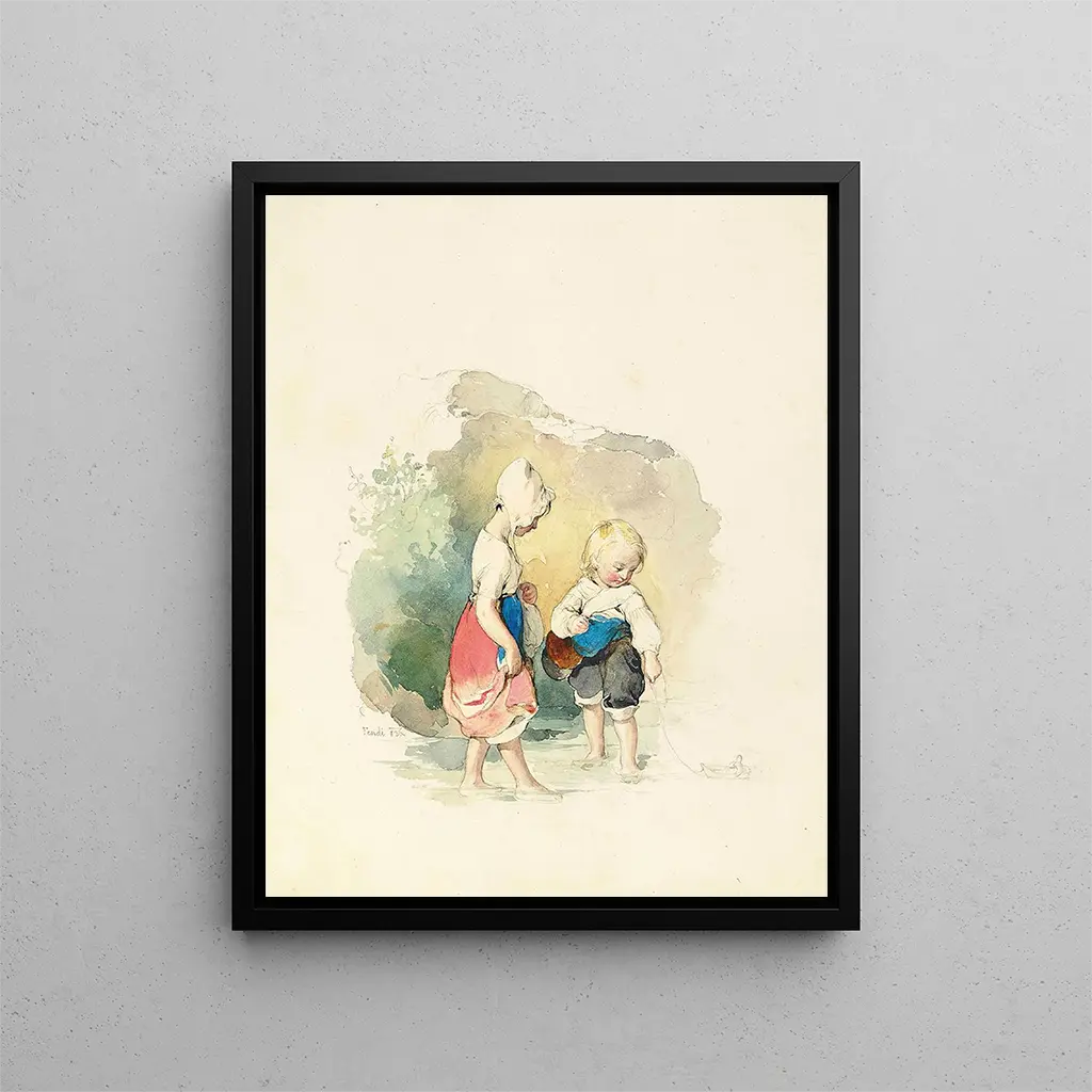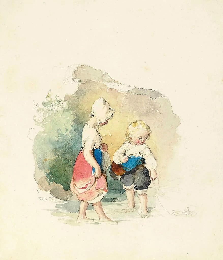 Children paddling near the rocks - Peter Fendi Source: Enfants pagayant près des rochers - Peter Fendi