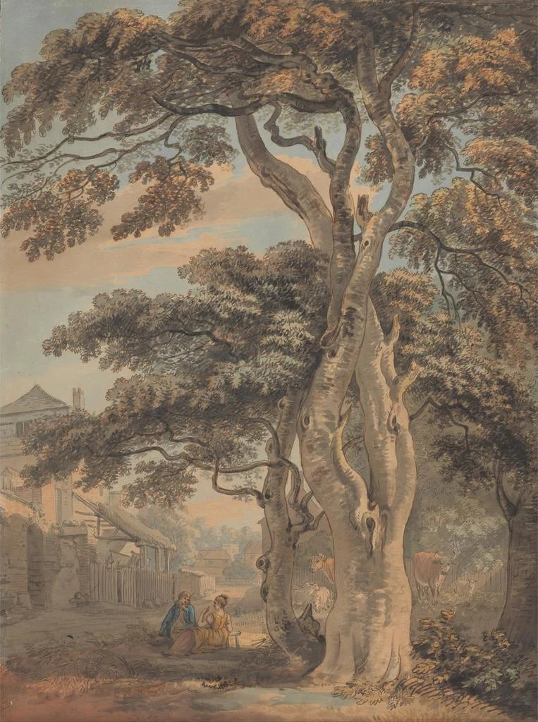Couple in a farmyard - Paul Sandby Source: Couple dans une cour de ferme - Paul Sandby