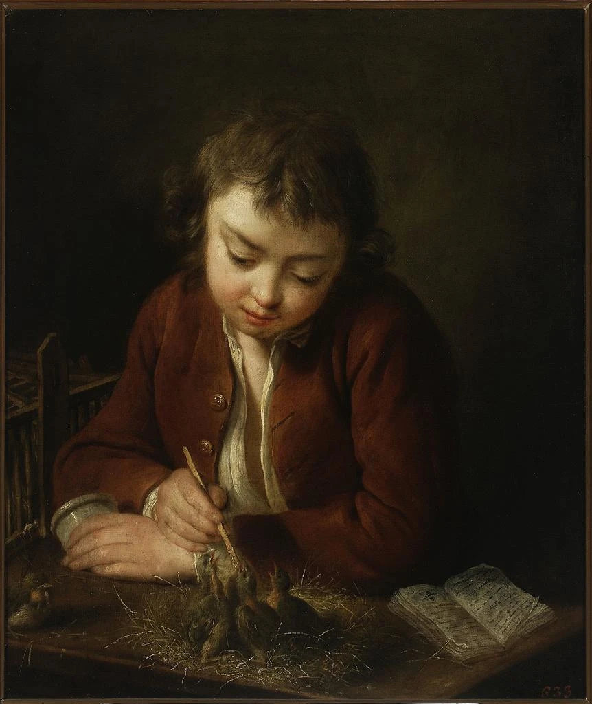 Boy feeding chicks - Jean-Baptiste Charpentier