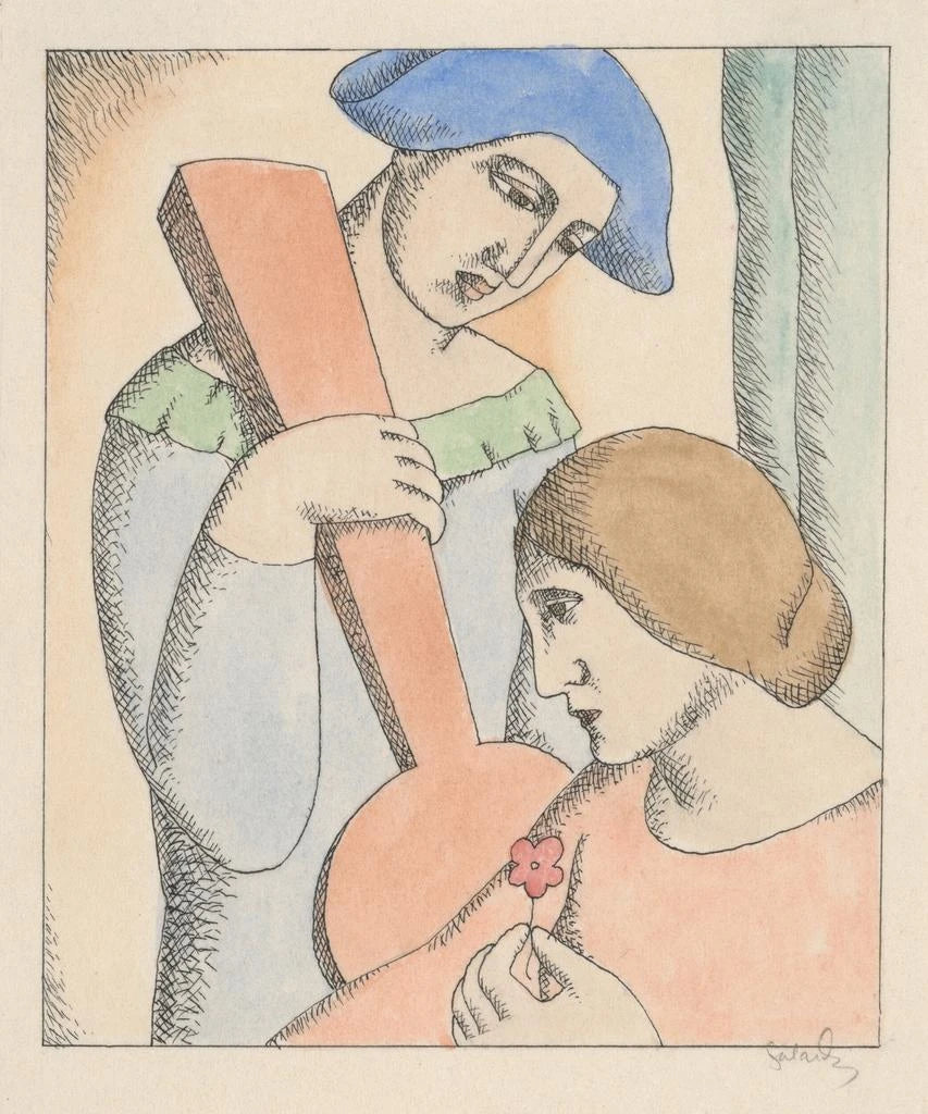 The lovers Harlequin and Columbine - Mikuláš Galanda Source: Les amoureux Arlequin et Colombine - Mikuláš Galanda