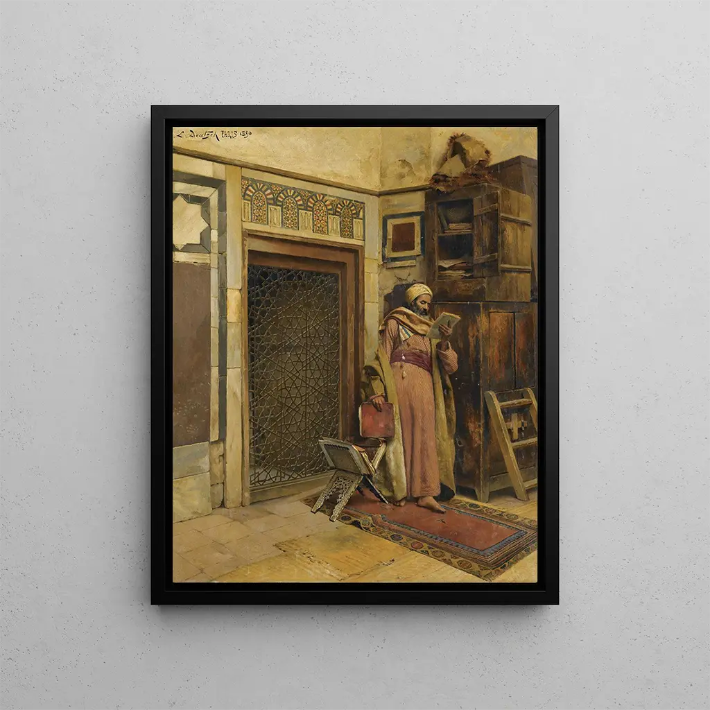 Le Savant: an exploration of knowledge In Le Savant, Ludwig Deutsch immerses us in a universe of wisdom and reflection. This art print depicts a scholar surrounded by ancient books and scientific instruments, symbols of the quest for knowledge. The rich tones and delicate shadows create an atmosphere of serenity and concentration, while the light highlights the details of the objects around him. Every element of the composition seems to tell a story, inviting the viewer to ponder knowledge and intellectual curiosity, making this art print of The Scholar both inspiring and contemplative. Ludwig Deutsch: a virtuoso of orientalism Ludwig Deutsch, a 19th-century Austrian painter, is renowned for his orientalist works that capture the essence of Middle Eastern cultures. Influenced by his travels in Egypt and Turkey, Deutsch excels in depicting scenes of daily life, blending realism and romanticism. His meticulous style and ability to play with light and textures make him a major figure in the orientalism movement. Through his paintings, Deutsch invites us to discover a world rich in colors and traditions, while questioning Western perceptions of the Orient. A decorative acquisition with multiple assets The art print of The Scholar is an ideal decorative choice for those looking to enrich their living space. Whether in an office, a library, or a living room, this canvas will add a touch of elegance and sophistication. Its print quality and fidelity to the original work ensure an impressive visual rendering, capturing everyone's attention. By incorporating this artwork into your decor, you choose a piece that not only beautifies your interior but also evokes a deep reflection on knowledge and wisdom, adding an intellectual dimension to your space.