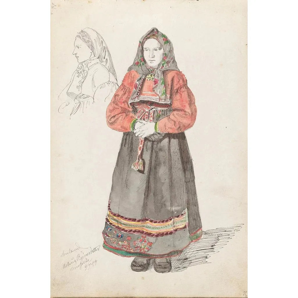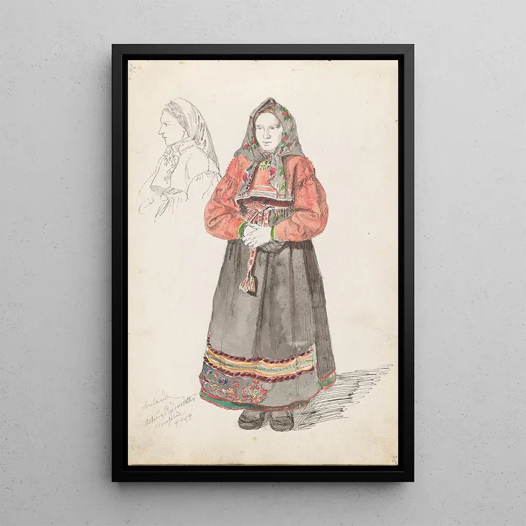 Aslaug Bjørnsdatter Moseb Sauland: a tribute to Norwegian tradition "Aslaug Bjørnsdatter Moseb Sauland" is an art print by Adolph Tidemand that celebrates the beauty of Norwegian traditions through the portrait of a woman with a determined gaze. The composition highlights intricate details, such as the embroidery on her dress and the typical accessories of her era, creating an authentic and warm atmosphere. The vivid colors and delicate nuances of the canvas evoke the richness of Scandinavian culture, while Tidemand's technique, blending realism and romanticism, brings this iconic figure to life. This art print invites reflection on identity and the role of women in 19th-century Norwegian society. Adolph Tidemand: a pioneer of romantic realism Adolph Tidemand, born in 1814, is recognized as one of the leading artists of the romantic movement in Norway. His career was marked by a desire to depict rural life and popular traditions, often inspired by his travels across the country. Tidemand studied in Copenhagen, where he was influenced by the great masters of realism. His works, such as "Aslaug Bjørnsdatter Moseb Sauland," reflect a deep admiration for Norwegian nature and customs, while emphasizing the dignity of the characters he portrays. This art print is part of a series of works that celebrate his country's cultural heritage. A decorative reproduction with multiple virtues The reproduction of "Aslaug Bjørnsdatter Moseb Sauland" is an ideal choice for those looking to enhance their interior decor. Whether in a living room, bedroom, or office, this canvas adds a touch of authenticity and charm. Its quality of reproduction ensures fidelity to the details and colors of the original artwork, allowing you to feel the emotion Tidemand aimed to convey. The aesthetic appeal of this art print lies in its ability to evoke stories and create a warm ambiance. By incorporating this piece into your decor, you give your space a unique artistic and cultural dimension.