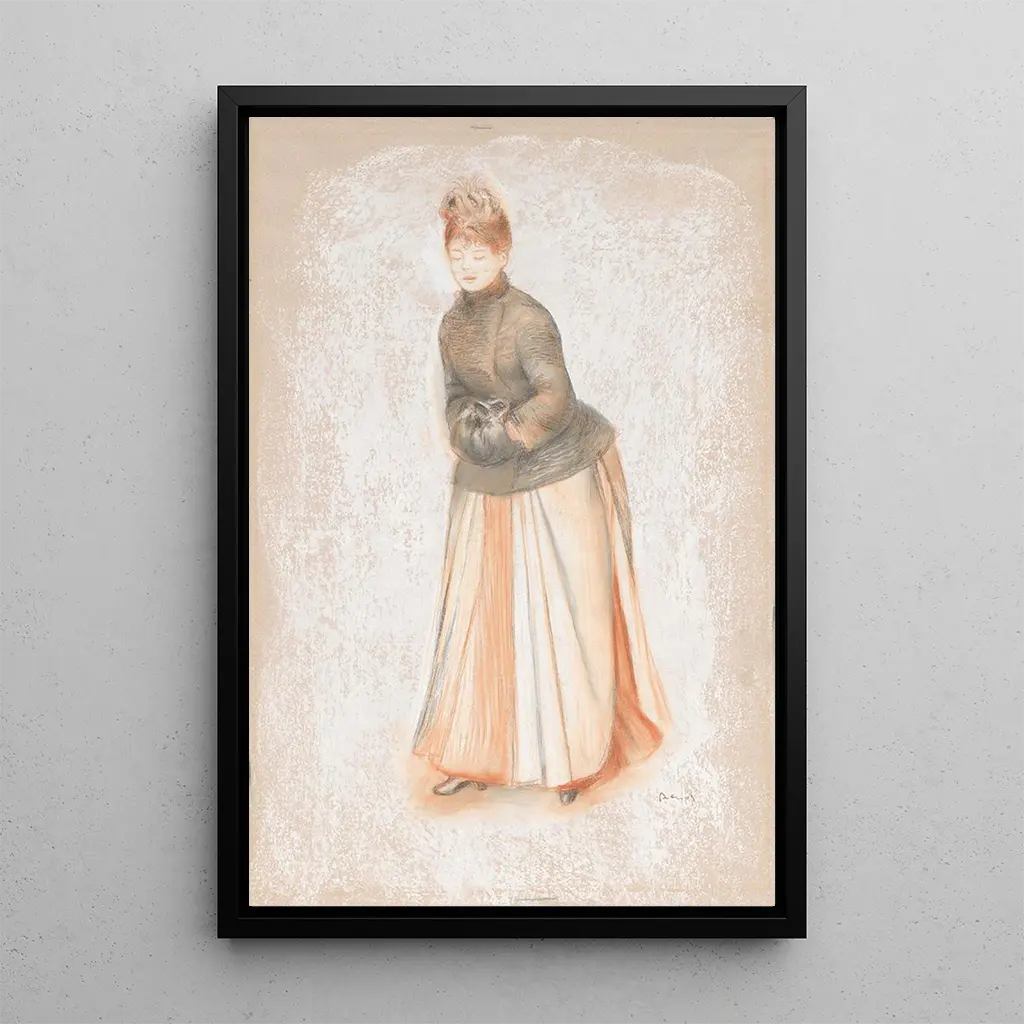 Young woman with a muff: a timeless elegance In this captivating artwork, Pierre-Auguste Renoir depicts an elegant young woman, dressed in a delicate dress and holding a fur muff. The soft and luminous colors, typical of Impressionism, create a warm and intimate atmosphere. The light plays a crucial role, illuminating the young woman's face and highlighting the textures of her clothing. The composition, with its blurred background, invites the viewer to focus on the main subject, while evoking a sense of movement and vitality. This art print of the painting "Young woman with a muff" is a true invitation to contemplate feminine beauty. Pierre-Auguste Renoir: a master of Impressionism Pierre-Auguste Renoir, an emblematic figure of the Impressionist movement, captured the joy of living through his works. Born in 1841, he was influenced by artists such as Monet and Degas, but developed a style that is uniquely his own, characterized by vibrant colors and scenes of everyday life. Renoir painted numerous portraits, highlighting the beauty and elegance of his models, often from the bourgeoisie. "Young woman with a muff" perfectly illustrates his talent for representing femininity and grace, while reflecting the era of La Belle Époque, when art and fashion intertwined. A decorative acquisition with multiple assets This art print of the painting "Young woman with a muff" is an ideal choice to enhance your interior, whether in a living room, office, or bedroom. Its aesthetic appeal and reproduction quality make it a centerpiece that attracts the eye and inspires admiration. The fidelity of colors and details allows you to feel the delicacy of the original work. By adding this canvas to your decor, you bring a touch of timeless elegance and a hint of refinement to your living space.