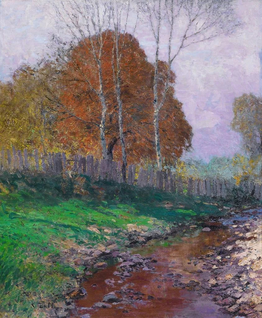 Alfred Zoff, born in 1852, was a painter who managed to establish himself in the art world of his time thanks to his innovative approach and keen sense of observation. Trained at the Academy of Fine Arts in Vienna, he was influenced by landscape masters, while developing a style that is uniquely his own. His work is marked by a deep attachment to nature, which he depicts with rare sensitivity.