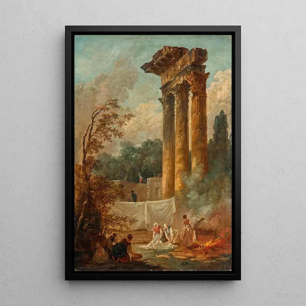 The art print of "Lavandières" is an ideal decorative piece to bring a touch of serenity to your interior. Whether in a living room, office, or bedroom, this canvas evokes an atmosphere of tranquility and simplicity. Its reproduction quality guarantees fidelity to the colors and details of the original artwork, allowing full appreciation of Hubert Robert's talent. With its aesthetic appeal, this piece invites contemplation and escape, making it a perfect choice to enrich your interior decoration.