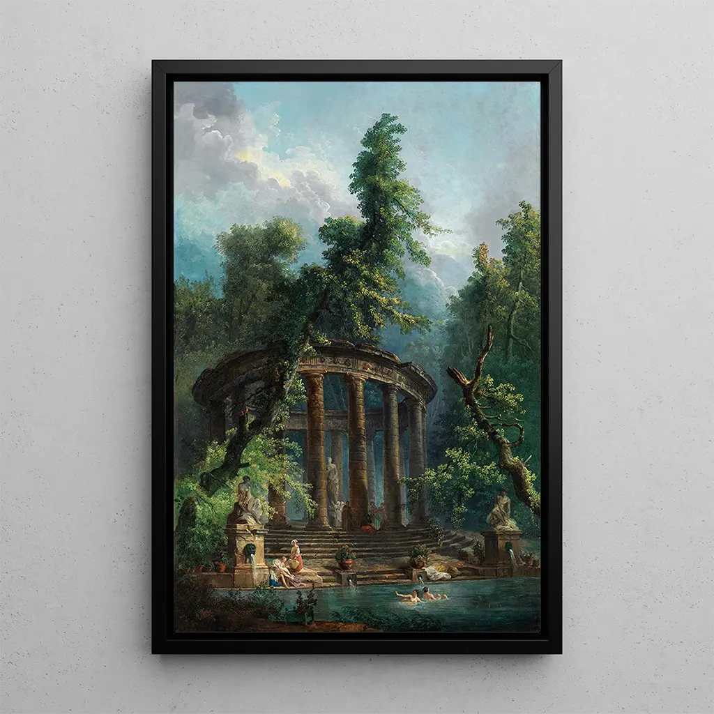 The Swimming Pool: An Oasis of Serenity "Le Bassin de baignade" by Hubert Robert is an art print that evokes tranquility and the beauty of French gardens. In this painting, the artist captures a moment of relaxation by the water, where light plays on reflective surfaces. The vivid colors and delicate shades of foliage create a peaceful, almost idyllic atmosphere. The harmonious composition, with its flowing lines and natural elements, invites daydreaming and escape. This art print is a true homage to nature and the French art of living. Hubert Robert: a pioneer of Romantic landscape art Hubert Robert, active in the 18th century, is often considered one of the pioneers of Romantic landscape art. His work stands out for a unique approach that blends nature and architecture, revealing a particular sensitivity to ruins and gardens. Trained at the Royal Academy of Painting and Sculpture, Robert was influenced by his travels in Italy, where he discovered the splendors of Antiquity. His paintings, such as "The Swimming Pool," demonstrate technical mastery and a poetic vision that marked his era and continue to inspire artists today. A decorative art print with multiple assets The reproduction of "The Swimming Pool" is a perfect decorative choice to bring a touch of serenity to your space. Whether in a living room, office, or bedroom, this art print will captivate the eye and inspire admiration. Its reproduction quality guarantees fidelity to the colors and details of the original artwork, allowing you to fully enjoy the magic of Hubert Robert. With its aesthetic appeal and soothing ambiance, this art print is an invitation to relaxation and contemplation, making it a valuable addition to any art collection.