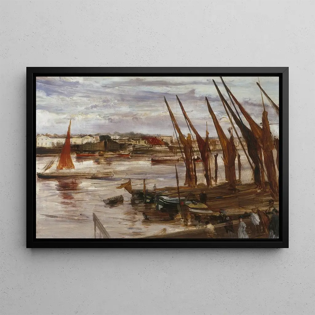 Battersea Reach : a symphony of light and water Battersea Reach, an iconic art print by James Abbott McNeill Whistler, evokes a peaceful atmosphere where light dances on the river's waters. The composition, dominated by shades of blue and gray, creates a captivating visual harmony. The reflections on the water, rendered with impressive delicacy, invite the viewer to immerse themselves in this tranquil scene. The watercolor technique, used with mastery, gives the overall a lightness and fluidity that seem almost ephemeral. This art print, a true ode to the beauty of nature, transports the observer to a suspended moment, where time appears to stand still. James Abbott McNeill Whistler : a master of tone and atmosphere James Abbott McNeill Whistler, an essential figure of the Impressionist movement, mastered the marriage of color and light in an unprecedented way. Born in 1834 in the United States, he settled in Paris where he absorbed influences from contemporary artists, while developing his own style. Whistler is famous for his works that capture fleeting moments, often inspired by urban life and nature. His creative period, spanning from the mid-19th century to his later years, is marked by a constant search for chromatic harmony. Battersea Reach is a perfect example of his innovative approach, where each brushstroke contributes to a unique visual experience. A decorative art print with multiple assets The reproduction of Battersea Reach is an ideal choice to enhance your interior, whether in a living room, office, or bedroom. Its soothing palette and fluid motifs bring a touch of elegance and serenity to any space. The quality of the art print ensures remarkable fidelity to the original work, allowing you to enjoy the aesthetic appeal of this canvas without compromise. By incorporating this art print into your decor, you invite not only a piece of art into your daily life but also a work from art history that will captivate and inspire your guests.