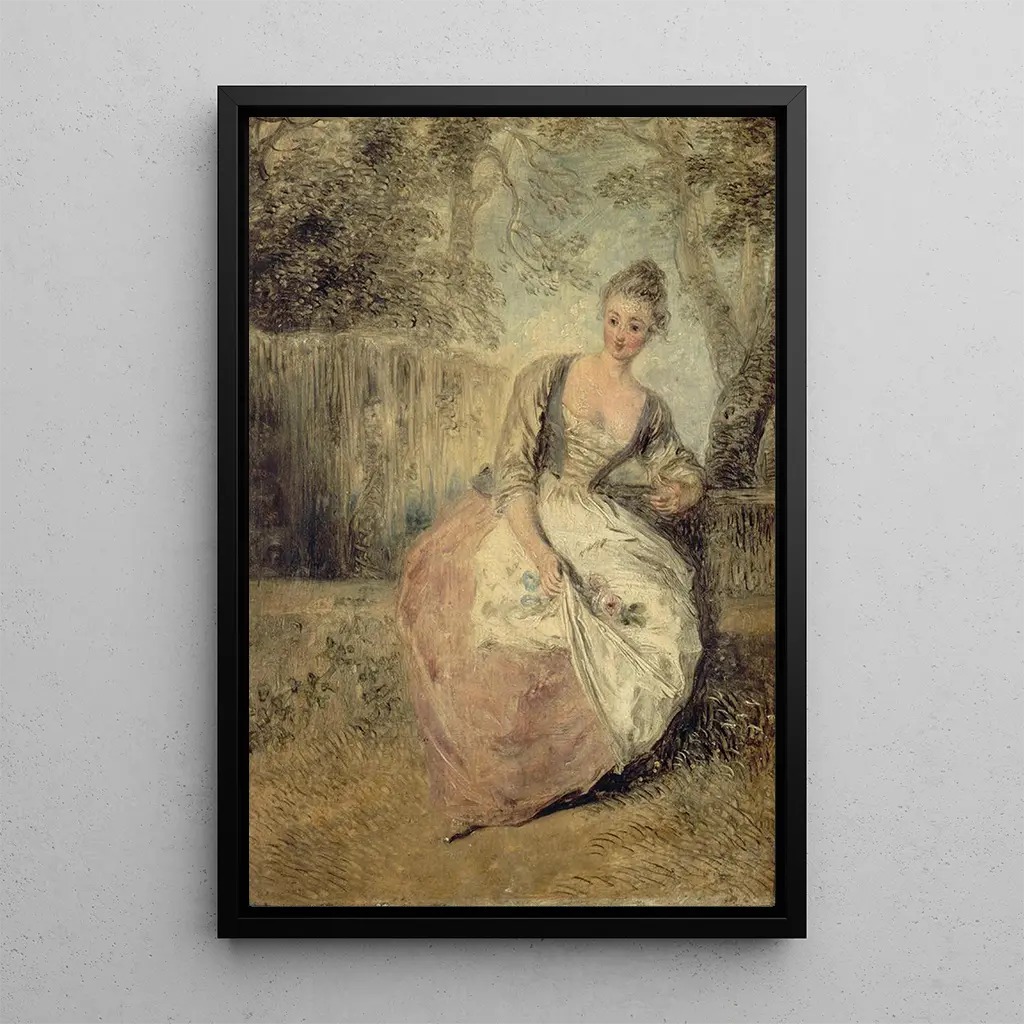 Jean-Antoine Watteau, an emblematic figure of the rococo movement in the 18th century, revolutionized French painting with his scenes of celebration and gallantry. Influenced by baroque and Flemish painting, he developed a unique style that combines elegance and sensitivity. His works, often poetic, reflect a society in search of lightness and pleasure. Watteau left a lasting legacy, inspiring many artists through the centuries, and "L'Amante inquiète" is a perfect example of his creative genius.