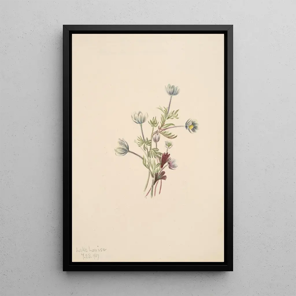 Anemone Anemone drummondii: a delicate dance of nature The Anemone drummondii, captured by Mary Vaux Walcott, evokes ephemeral and fragile beauty. This artwork, created with meticulous attention to detail, illustrates the delicate petals of the flower, whose shades of white and violet blend harmoniously. The watercolor technique used by the artist gives the composition a lightness, almost airy, inviting serene contemplation. The atmosphere emanating from this painting is imbued with softness and tranquility, transporting the viewer to a secret garden where nature flourishes. Mary Vaux Walcott: a pioneer of botanical art Mary Vaux Walcott, active in the early 20th century, is recognized for her essential role in American botanical art. Influenced by the naturalist movements of her time, she mastered the balance between scientific accuracy and artistic sensitivity. Her works, often inspired by her travels across the United States and Canada, reflect a passion for local flora. As a member of the American Society of Botanical Artists, Walcott contributed to the recognition of botanical art as a genuine form of art, leaving her mark in art history. A decorative acquisition with multiple advantages The art print of the Anemone drummondii is an ideal choice to enhance your interior, whether in a living room, office, or bedroom. Its print quality guarantees remarkable fidelity to the colors and details of the original artwork, while adding a touch of nature to your decor. This piece, with its undeniable aesthetic appeal, will attract art and botany enthusiasts alike, creating a calming and inspiring atmosphere in your living space.