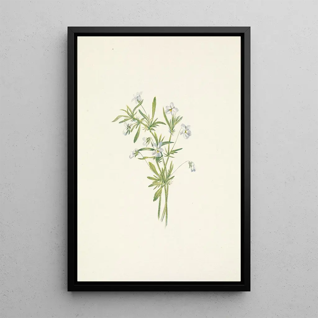 Violette des champs Viola rafinesquii : a delicate ode to nature The art print of the Violette des champs, or Viola rafinesquii, immerses us in a floral universe filled with softness and serenity. The shades of violet and white blend harmoniously, creating a lively tableau that evokes the ephemeral beauty of wildflowers. The watercolor technique, used by Mary Vaux Walcott, captures the lightness and transparency of the petals, while infusing a peaceful atmosphere. Every detail, from the delicate leaves to the contours of the flowers, is rendered with precision that invites wonder and contemplation. Mary Vaux Walcott : a pioneer of botanical illustration Mary Vaux Walcott, active in the early 20th century, is recognized for her exceptional work as a botanical illustrator. Influenced by the artistic movements of her time, she skillfully combined science and art to create highly accurate works. Her illustrations, including the Violette des champs, demonstrate a deep respect for nature and a desire to raise public awareness about biodiversity. As a member of the American Botanical Society, she contributed to the advancement of scientific illustration, leaving a lasting legacy in the field of botanical art. A decorative acquisition with multiple advantages Choosing the art print of the Violette des champs is a wise choice to enhance your interior. Whether in a living room, office, or bedroom, this piece adds a touch of freshness and color. Its printing quality guarantees fidelity to the details of the original, while its aesthetic appeal makes it a central decorative element. By adding this canvas to your space, you invite nature inside, creating a calming and inspiring atmosphere.
