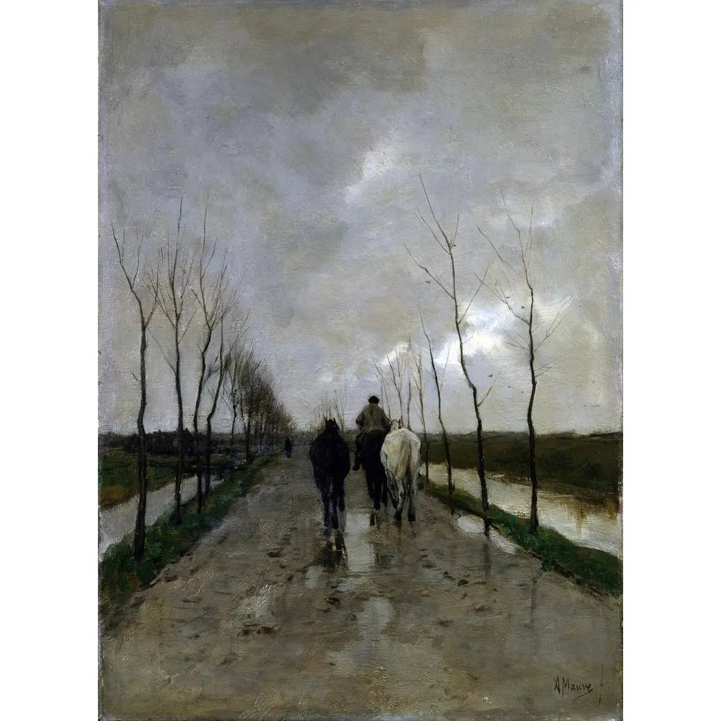 A Dutch road: a journey through Dutch landscapes A Dutch road by Anton Mauve is an art print that evokes the serenity of typical Dutch scenery. The soft hues and play of light capture the essence of a peaceful day in the countryside. Mauve, with his mastery of nuances, manages to create a calming atmosphere where one can almost hear the whisper of the wind in the fields. The composition, with its winding lines and natural elements, guides the viewer's eye across the artwork, inviting a visual exploration of the details. This art print is a true ode to the beauty of Dutch landscapes. Anton Mauve: a master of pastoral realism Anton Mauve, an iconic figure of the realist movement in the 19th century, was able to capture rural life with a unique sensitivity. Raised in an artist family, he was influenced by the great masters of his time, while developing his own style. Mauve is recognized for his ability to represent the light and atmosphere of landscapes, which earned him a prominent place in art history. A Dutch road perfectly illustrates his talent, blending a faithful depiction of nature with a personal interpretation that transcends simple realism. A decorative art print with multiple assets The reproduction of A Dutch road by Anton Mauve is a perfect choice to enhance your living space. Whether in a living room, an office, or a bedroom, this art print adds a touch of tranquility and charm. Its reproduction quality ensures impressive fidelity to the details of the original artwork, while offering a captivating visual appeal. By integrating this art print into your decor, you create a warm and welcoming atmosphere, while celebrating the beauty of Dutch landscapes. This art print thus becomes a decorative element that inspires and soothes.