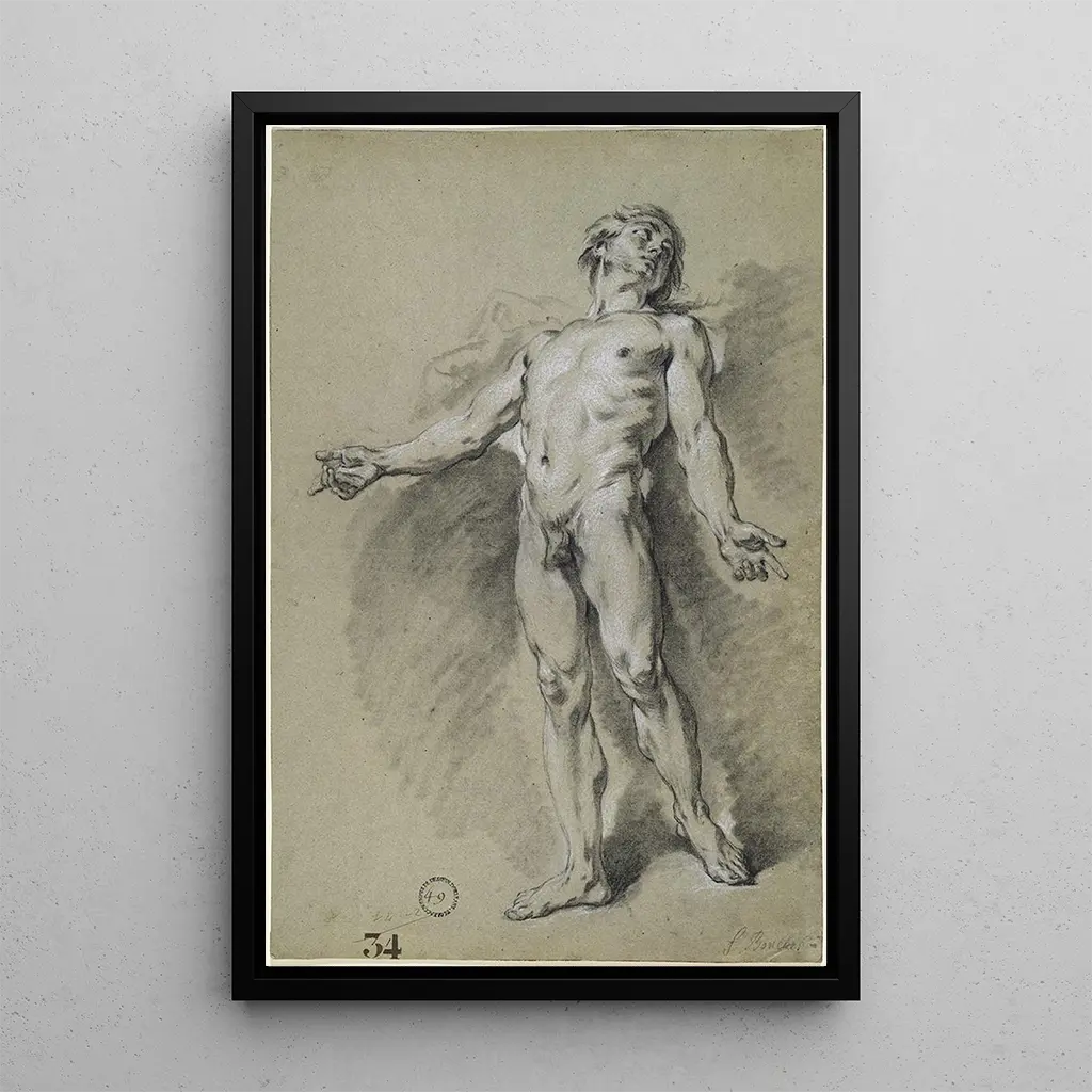 In this iconic art print, François Boucher transports us into a world of light and sensuality. Apollon, the god of music and poetry, is depicted with exquisite grace, surrounded by floral motifs and pastel colors. The golden hues and shades of blue create an enchanting atmosphere, while the oil painting technique reveals delicate details, such as flowing draperies and serene expressions. The piece invites deep contemplation, where each glance reveals a new facet of divine beauty.