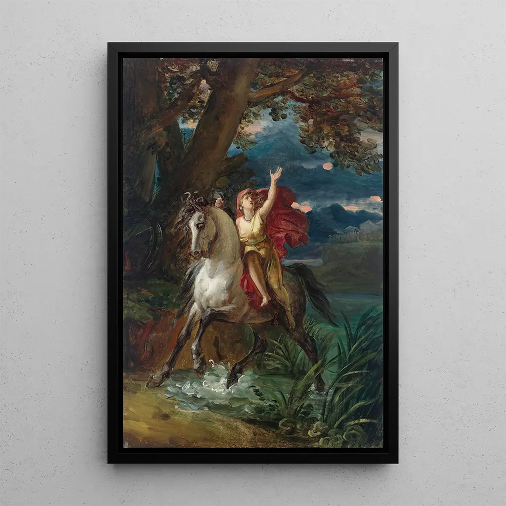 Cleopatra: An Enchanting Queen The art print of Cleopatra by François Gérard immerses us in a universe where beauty and power intersect. This canvas, rich in warm colors and refined details, depicts the famous Egyptian queen in a majestic pose. The drapes of her deep blue garment contrast with the golden hues of her complexion, creating an atmosphere that is both alluring and mysterious. The light plays across her face, accentuating her piercing gaze that seems to capture the soul of those who observe her. Gérard employs an oil painting technique that brings each detail to life, making this artwork captivating and timeless. François Gérard: The Portraitist of Great Figures François Gérard, active at the end of the 18th century and the beginning of the 19th century, is recognized as one of the most influential portraitists of his era. Trained at the Royal Academy of Painting and Sculpture, he mastered neoclassical influences while developing a personal style. His works, often commissioned by the aristocracy, demonstrate exceptional mastery of light and shadow. Gérard immortalized iconic figures of his time, and his depiction of Cleopatra fits within a tradition of fascination with Antiquity, where exoticism and historical drama intertwine. A Decorative Acquisition with Multiple Assets The art print of the Cleopatra painting is a decorative piece that will enhance your interior, whether in a living room, office, or bedroom. Its aesthetic appeal and enchanting ambiance add a touch of sophistication to any space. The quality of the reproduction guarantees fidelity to the colors and details of the original artwork, allowing you to enjoy the beauty of this iconic scene. By choosing this canvas, you opt for a decorative element that inspires admiration and invites contemplation, while paying tribute to François Gérard's artistic legacy.