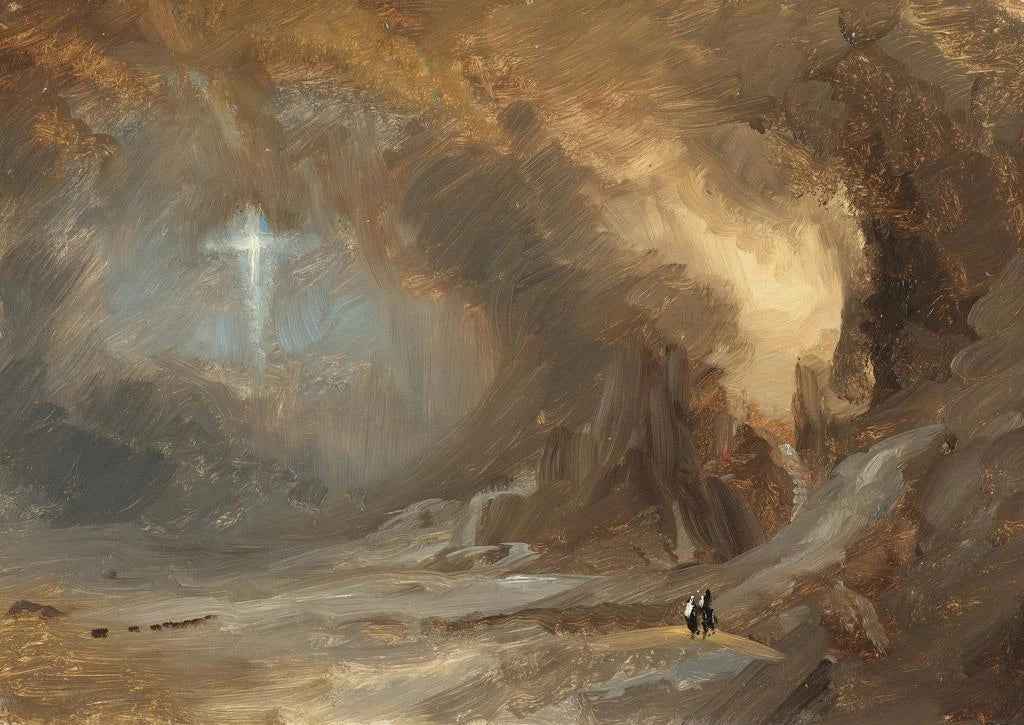 Vision of the Cross: a spiritual journey through light "Vision of the Cross" by Frederic Edwin Church is a captivating artwork that evokes a mystical experience. The canvas, bathed in golden light, depicts a scene where the cross stands majestically atop a mountain, surrounded by clouds and grand landscapes. The vibrant colors, ranging from bright oranges to deep blues, create an atmosphere that is both dramatic and soothing. Church's technique, characterized by meticulous realism and particular attention to detail, allows viewers to feel the spiritual power of this vision. Frederic Edwin Church: a master of American landscape painting Frederic Edwin Church, an iconic figure of the Hudson River School movement, mastered blending landscape with a spiritual dimension. Active in the 19th century, he was influenced by travels in South America and Romantic philosophy, seeking to capture the sublime beauty of nature. His often grandiose works reflect a quest for transcendence and admiration for divine creation. "Vision of the Cross" aligns with this tradition, demonstrating the importance of nature in the spirituality and art of his time. A decorative acquisition with multiple benefits The art print of "Vision of the Cross" is a decorative piece that will enrich your living space. Whether in a living room, office, or bedroom, this canvas adds a spiritual and aesthetic dimension to your interior. Its printing quality guarantees fidelity to the colors and details of the original work, while creating an inspiring atmosphere. By incorporating this artwork into your decor, you give your space a touch of grandeur and an invitation to reflection, transforming every glance into a contemplative experience.