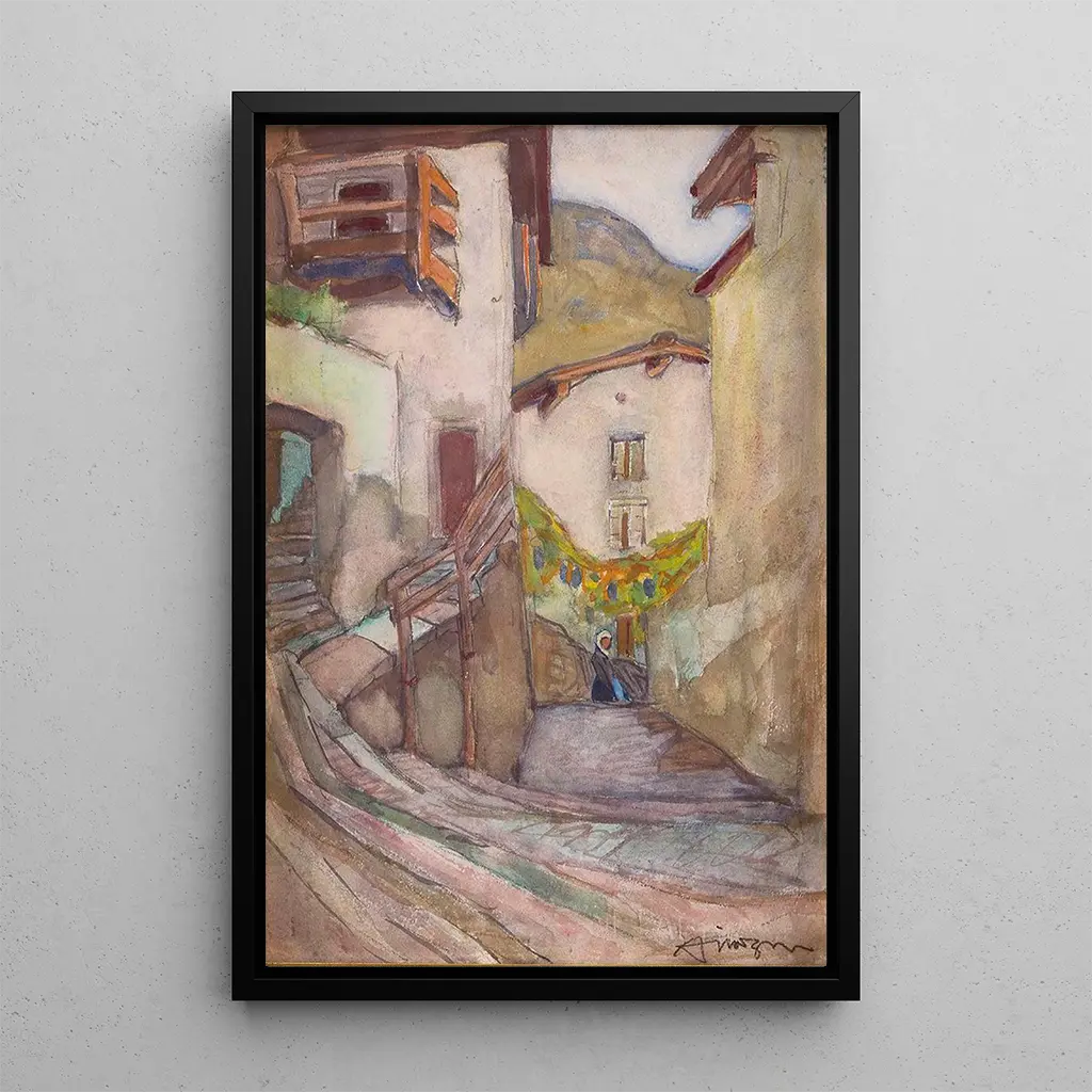 Ruelle à Garda : an art print of serenity and charm The canvas "Ruelle à Garda" by Artur Nikodem depicts a peaceful scene, where narrow alleys and colorful facades blend harmoniously. The warm and luminous tones create a welcoming atmosphere, inviting leisurely strolls and discovery. Nikodem's impressionist technique, with its delicate brushstrokes, pays tribute to the beauty of Italian landscapes. Every detail, from flowers to shutters, contributes to a composition that exudes tranquility and joie de vivre, transporting the viewer to the heart of this charming locality. Artur Nikodem : an artist at the heart of Italy Artur Nikodem, a Polish painter active in the early 20th century, was strongly influenced by his stays in Italy. His work is characterized by an impressionist style, where light and color play a central role. Nikodem captured the essence of Italian landscapes, particularly those of Lake Garda, where he found an inexhaustible source of inspiration. His work reflects a time when art was freeing itself from academic conventions, and he helped reveal the beauty of everyday scenes through a poetic perspective. A decorative art print with multiple assets The reproduction of "Ruelle à Garda" is an ideal piece to enhance your interior, whether in a living room, office, or bedroom. Its print quality and fidelity to the nuances of the original artwork ensure a strong visual impact. This art print by Artur Nikodem brings a touch of serenity and charm to your decor, while evoking memories of travels and discoveries. By integrating this canvas into your space, you offer your walls an invitation to rêverie and escape, creating a warm and welcoming atmosphere.