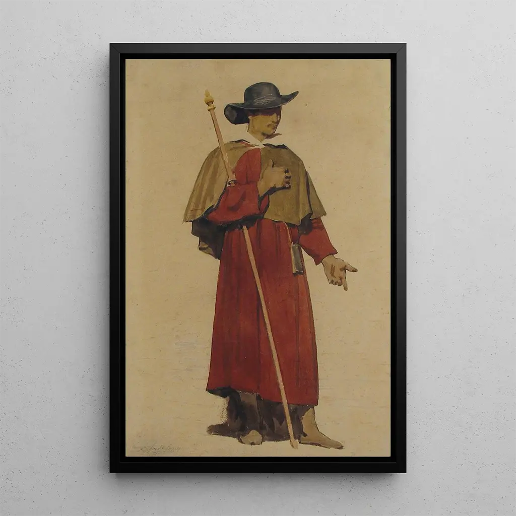 An Italian pilgrim: a spiritual quest through art The art print of An Italian pilgrim immerses us in a scene rich in emotion and symbolism. The central figure, dressed in traditional attire, embodies the traveler in search of meaning. The earthy colors and delicate shadows create an atmosphere of mystery and depth. The oil on canvas technique allows for detailed rendering of the face and clothing with great precision, emphasizing the expression of determination and faith. This artwork invites reflection on the inner journey and spiritual aspirations, while capturing the essence of a time when faith and travel were closely intertwined. Dominique Louis Papety: a romantic artist dedicated to storytelling Dominique Louis Papety, active in the 19th century, was a French painter whose work is rooted in the romantic movement. Influenced by the major themes of his era, he was interested in depicting the human condition, travels, and spiritual quests. Papety stands out for his ability to tell stories through his works, blending realism and idealization. His artistic approach, imbued with sensitivity, reflects the concerns of his time, marked by social and political upheavals. Rediscovering his work highlights the importance of Papety in the artistic landscape of his era. A decorative art print with multiple advantages Choosing the art print of An Italian pilgrim means integrating a piece full of meaning and emotion into your living space. Whether in a living room, office, or bedroom, this canvas adds a narrative and spiritual dimension to your decor. The quality of the reproduction ensures fidelity to the details and colors of the original artwork, allowing you to enjoy its aesthetic appeal daily. By adding this art print to your interior, you create an inspiring environment that invites reflection and contemplation, while celebrating romantic art.