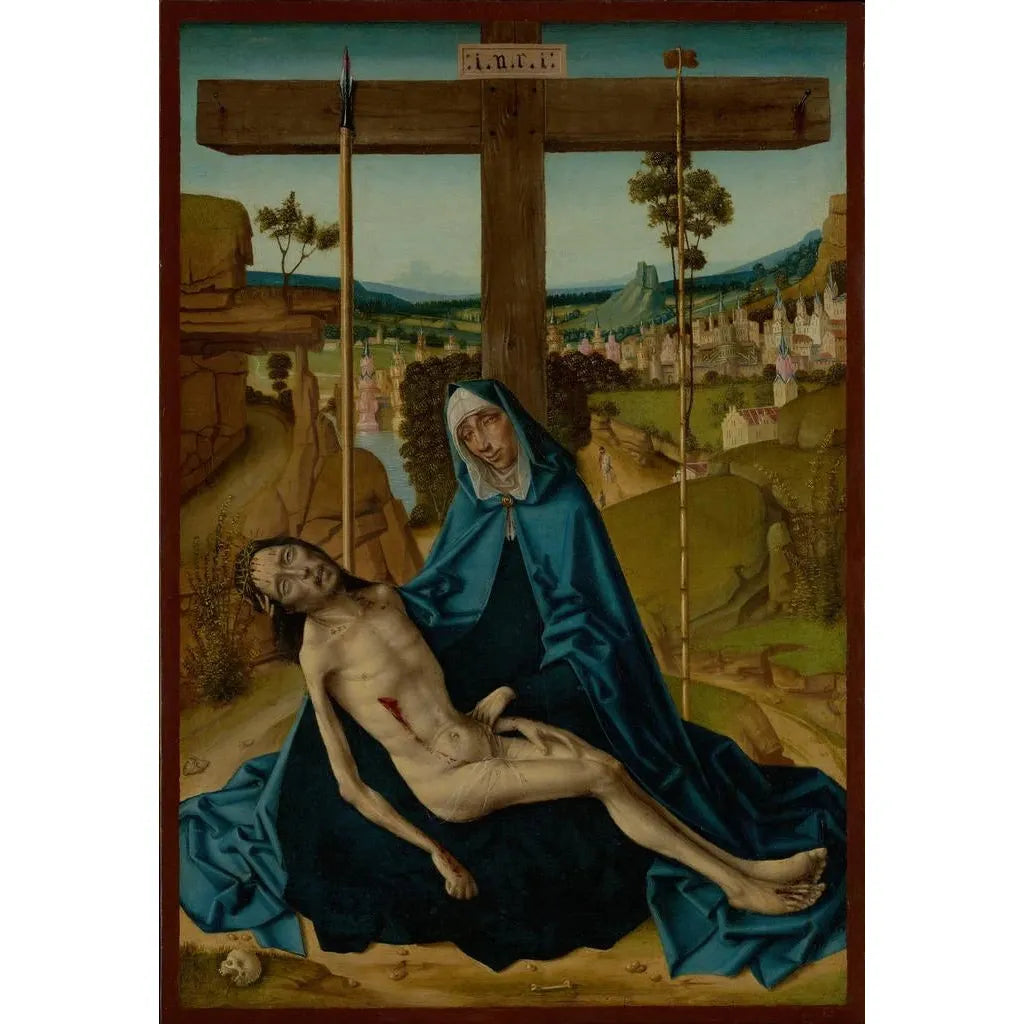 Piéta: a work of devotion and suffering The art print of the Piéta, an emblematic piece by the Circle of Fernando Gallego, evokes deep emotion through the poignant depiction of the Virgin Mary holding Christ's body. The dark colors and play of shadows emphasize the sadness of the scene, while the oil painting technique provides a rich texture and striking depth. The atmosphere conveyed by this artwork is both solemn and contemplative, inviting the viewer to reflect on suffering and redemption. Every detail, from the folds of the garments to the expressions on the faces, helps create a strong emotional connection with the piece. Circle of Fernando Gallego: a witness to the Spanish Renaissance Fernando Gallego, active in the late 15th century, is an artist whose work illustrates the influences of the Italian Renaissance while incorporating elements of the Spanish tradition. Although little precise information remains about his biography, his style is characterized by meticulous attention to detail and a symbolic use of colors. The Circle of Gallego, which groups several artists of his time, played a crucial role in the evolution of art in Spain, introducing religious themes and innovative techniques that influenced many later artists. The Piéta is a perfect example, combining spirituality and technical virtuosity. A decorative acquisition with multiple assets The art print of the Piéta is a decorative piece that fits well in a living room, office, or bedroom. Its aesthetic appeal and reproduction quality make it an ideal choice for those wishing to enrich their interior with a touch of history and spirituality. The fidelity of colors and details to the original work allows you to feel the very essence of this artistic creation. By integrating this artwork into your decor, you give your space an atmosphere imbued with reflection and beauty, while celebrating the cultural heritage of the Spanish Renaissance.