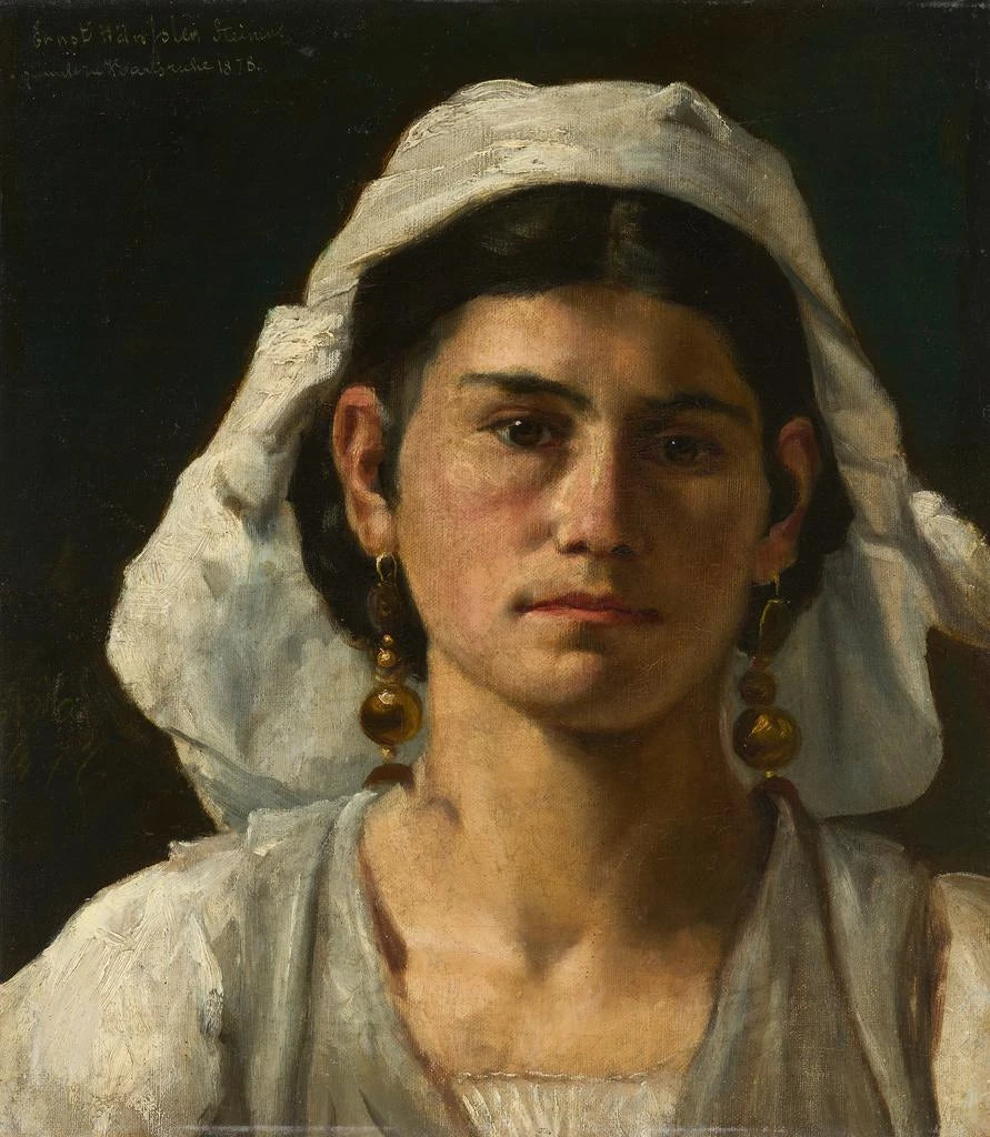 Portrait of an Italian woman - Ernst Hnler – Captivating introduction The artwork titled "Portrait of an Italian woman" by Ernst Hnler unfolds like an open window into a world filled with mystery and beauty. Through this painting, the artist invites us to delve into the intimacy of a female figure, whose expression and posture reveal a rare emotional depth. The delicacy of the features, the richness of the colors, and the subtle light caressing the woman's face make it a captivating piece that leaves a lasting impression. This portrait does not merely depict a woman; it evokes a story, an universe, a culture, and prompts us to question identity and female condition across ages. Style and uniqueness of the work Ernst Hnler's style is characterized by a harmonious fusion of realism and expressionism, where each brushstroke seems imbued with a profound intention. In "Portrait of an Italian woman," the composition is carefully balanced, highlighting the woman's face which, through her gaze, appears to captivate and challenge us. The nuances of color, ranging from warm tones to cooler shades, create an atmosphere that is both soothing and unsettling. The light, omnipresent, plays a crucial role, emphasizing the contours of the face while gently darkening the background. This contrast enhances the intensity of the protagonist's gaze and takes us on a unique emotional journey. Hnler manages to transcend mere representation to offer a true celebration of femininity, where every detail matters. The artist and his influence Ernst Hnler, a German-born artist, has established himself on the art scene through his innovative approach and keen sensitivity to human emotions. Influenced by the great masters of painting, he developed a personal style that combines tradition and modernity. His work is marked by a constant exploration of themes such as identity, memory, and beauty. Hnler was also a passionate advocate of art as a means of expression and communication, placing the human at the heart of his artistic process. Through his portraits