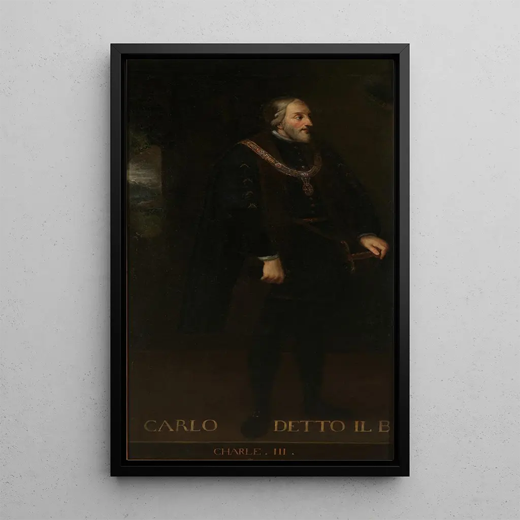 The artist of this portrait, although remaining anonymous, succeeded in immortalizing the image of Carlo II, King of Spain in the 17th century, a time of upheavals and conflicts. Influenced by the baroque, this artistic style is characterized by its expressiveness and dynamism, reflecting the tensions of the period. The art print bears witness to the importance of royal power and the representation of sovereigns in art, serving to reinforce their legitimacy. Carlo II's era, often described as a declining golden age, was marked by economic crises and dynastic struggles, giving this art print an invaluable historical significance.