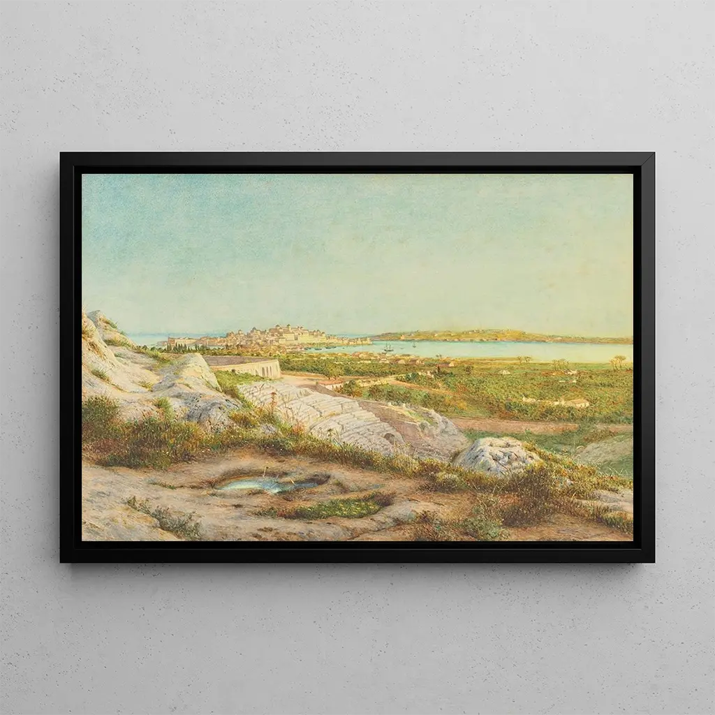 The art print "Syracuse" by Henry Wallis transports us into a world of classical beauty and delicacy. With soft pastel colors and a harmonious composition, the piece evokes a dreamlike atmosphere. The human figures, finely detailed, seem to capture a suspended moment in time, where grace and elegance meet. Wallis's technique, characterized by precise outlines and subtle lighting, creates a depth that draws the eye and invites exploration of the details. "Syracuse" is truly a celebration of timeless beauty.