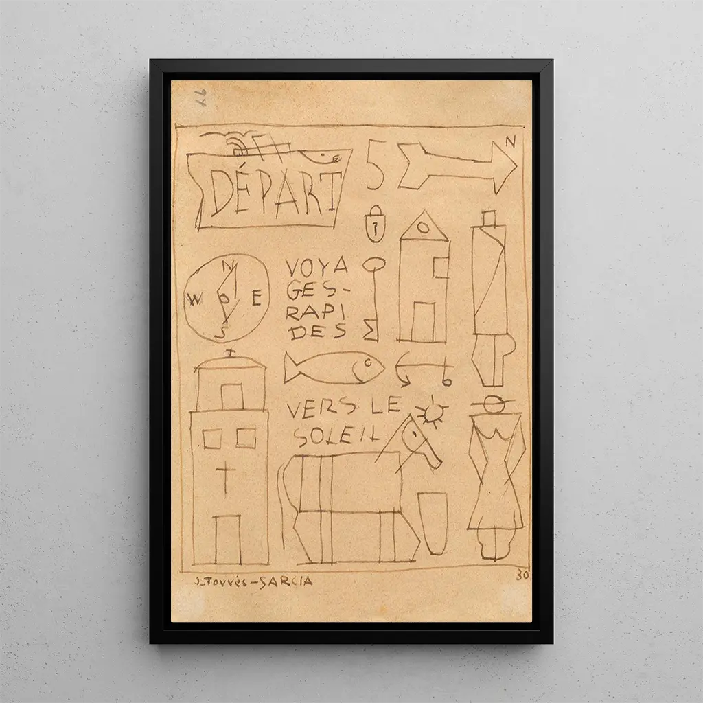 Rapid journeys to the sun: an escape to infinity In "Rapid journeys to the sun," Joaquín Torres-García transports us into a vibrant universe where dazzling colors blend with geometric shapes. The artwork, imbued with a dynamic atmosphere, evokes a voyage through time and space. Warm shades of yellow and orange dominate, symbolizing the light and energy of the sun, while straight lines and curves intertwine to create a sense of movement. This canvas, created with a mixed technique, invites the viewer to active contemplation, to imagine traveling toward distant horizons. Joaquín Torres-García: pioneer of South American constructivism Joaquín Torres-García, a 20th-century Uruguayan artist, is recognized for his major role in the development of constructivism in Latin America. Influenced by European avant-garde movements, he successfully integrated elements of South American culture into his work. His career, marked by stays in Europe, allowed him to fuse various styles, ranging from cubism to geometric abstraction. Torres-García also founded the Montevideo workshop, a place of artistic exchange that contributed to the emergence of many contemporary artists. His legacy endures, making him an emblematic figure of modern art. A decorative acquisition with multiple assets The art print of "Rapid journeys to the sun" is a decorative piece that will enhance any interior, whether in a living room, office, or bedroom. Its print quality guarantees fidelity to the colors and details of the original artwork, while adding a touch of energy to your space. This painting, with its captivating motifs and luminous palette, immediately draws the eye and sparks conversations. By choosing this canvas, you opt for a decoration that is both aesthetic and inspiring, evoking travel and discovery.