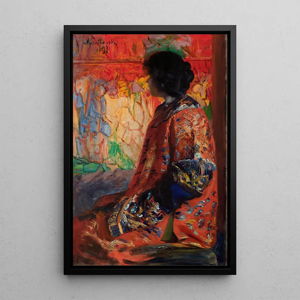 In this art print of the work "Femme japonaise," Leon Wyczółkowski captures the delicate and mysterious essence of Japanese culture. The composition stands out with vibrant and harmonious colors, where shades of red and blue blend subtly. The artist's technique, both precise and fluid, creates an atmosphere of serenity and contemplation. The depicted woman, dressed in traditional clothing, seems to flourish in a dreamlike world, inviting the viewer to immerse themselves in her fascinating universe.