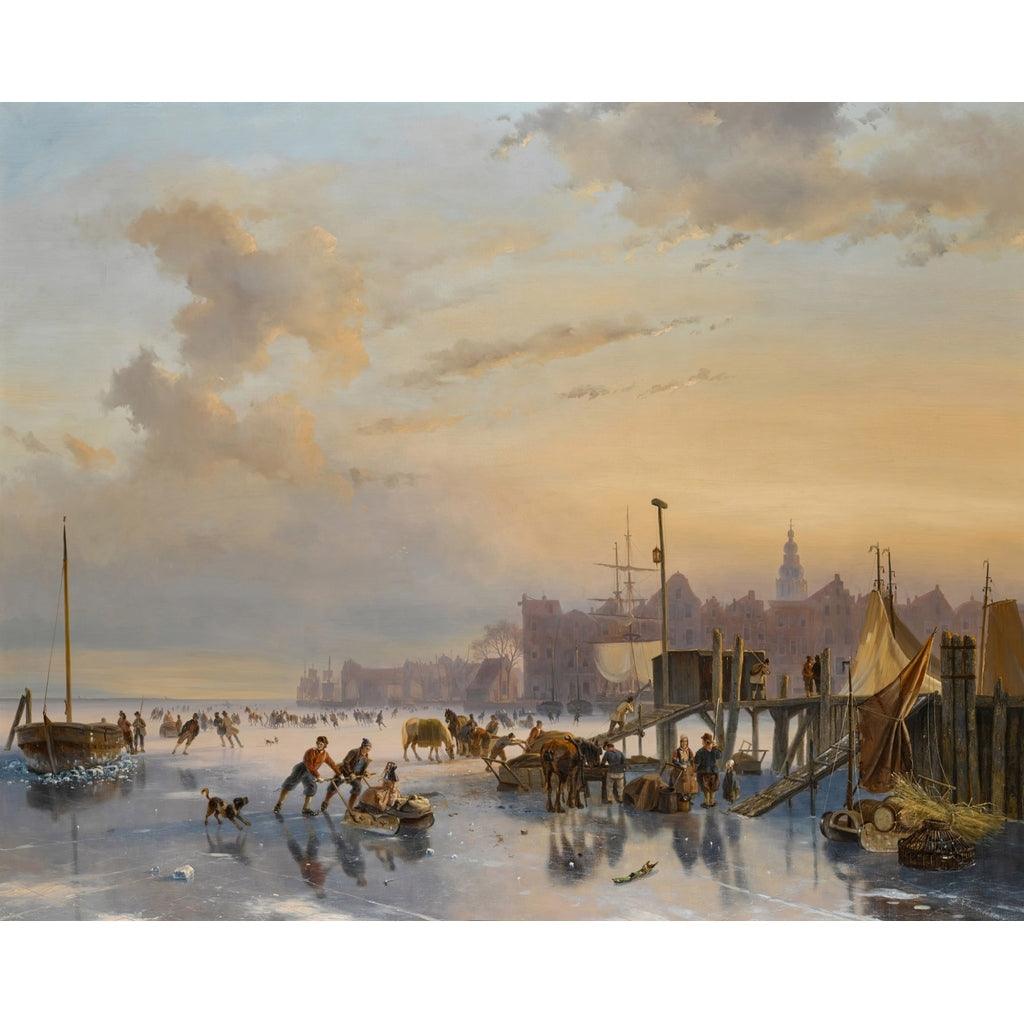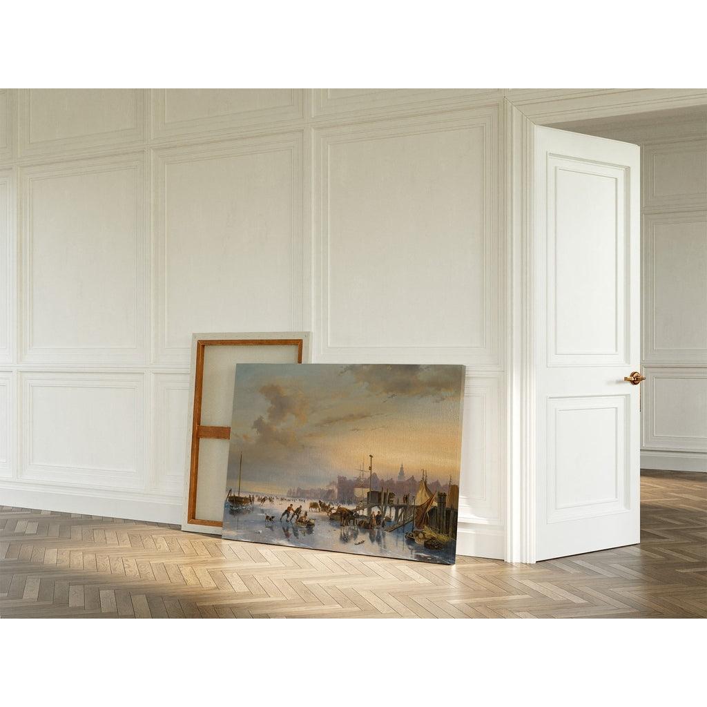 Discover the incredible work of Nicolaas Johannes Rooseboom through his masterpiece entitled IJ skaters, Amsterdam, which evokes the vibrant life of the skaters slipping graciously on the waters of the IJ, in Amsterdam. This emblematic work illustrates not only a picturesque winter scene, but it also testifies to a pivotal moment in the history of art where realism took a new dimension. Roosenboom, a Dutch artist from the 19th century, was able to capture the very essence of winter in Amsterdam, while highlighting human joy through skating.
