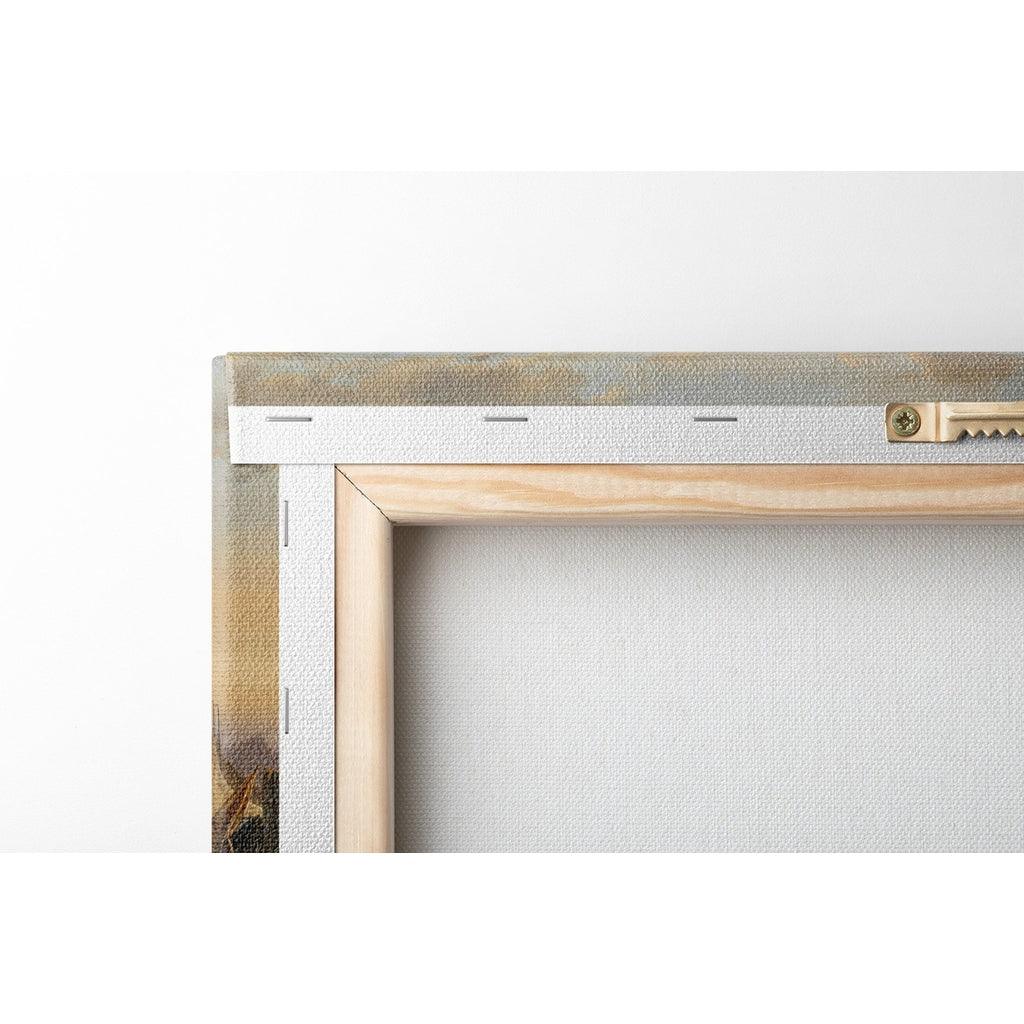 Canvas, matte finish print, mounted on a wooden structure, ready to hang. Framing options available on certain sizes.