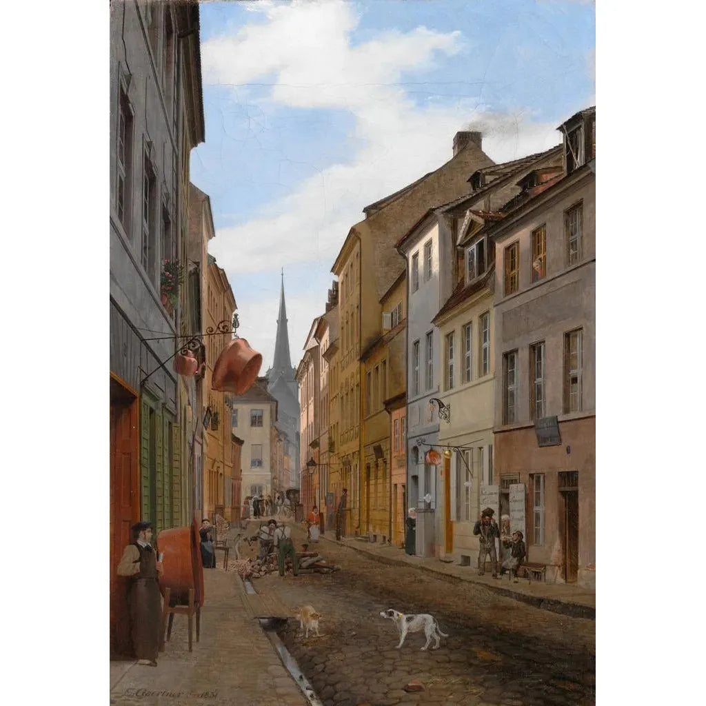 The art print of Parochialstrasse in Berlin invites an immersive exploration of the city in the 19th century. Eduard Gaertner, with exceptional mastery of light and shadow, captures the essence of a lively street, where passersby cross paths in a dynamic atmosphere. The warm, earthy colors, blended with touches of light, create a harmonious balance, while the architectural details of the surrounding buildings add depth to the scene. This artwork evokes nostalgia for a bygone era, while celebrating the vibrancy of city life.