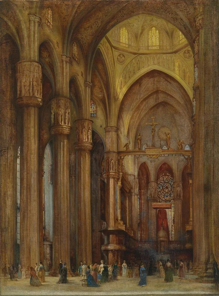 Franz Alt, born in 1815, was a painter whose work marked the 19th century. Raised in an artistic environment, he developed a style that blends realism and romanticism. His passion for architecture and nature is reflected in his paintings, where every detail is carefully observed and reconstructed. Alt was also influenced by the great masters of landscape painting, but he forged his own identity by highlighting the specificities of the places he depicted. The cathedral of Milan, as a symbol of