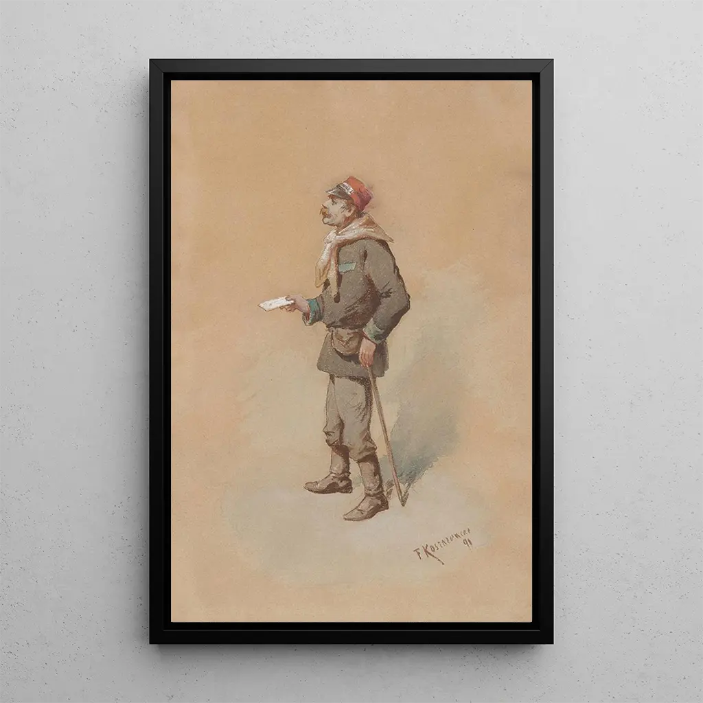 Franciszek Kostrzewski, né en Pologne au XIXe siècle, est un artiste dont le travail témoigne des bouleversements sociaux et culturels de son époque. Influencé par le mouvement romantique, il a su capter l'âme de la Pologne à travers ses œuvres, faisant de lui une figure importante de l'histoire de l'art polonais. Son style, caractérisé par une attention minutieuse aux détails et une palette riche, reflète les aspirations et les luttes de son pays. En explorant des thèmes de la vie quotidienne et des paysages urbains, Kostrzewski a su immortaliser des moments fugaces, faisant de ses tableaux des témoignages précieux de l'identité polonaise.