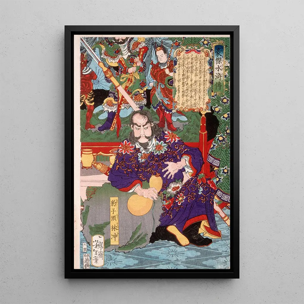 Héros du roman Suikoden : une épopée visuelle captivante Dans cette art print du tableau Héros du roman Suikoden, Tsukioka Yoshitoshi nous plonge dans un monde de bravoure et de légende. Les personnages, magnifiquement détaillés, sont vêtus de costumes traditionnels japonais, tandis que des couleurs vives et des motifs dynamiques insufflent une énergie palpable à la scène. La technique de l'estampe ukiyo-e, caractéristique de l'art de Yoshitoshi, se manifeste ici par des lignes fluides et des contrastes saisissants, créant une atmosphère à la fois dramatique et poétique. Chaque héros, figé dans un moment d'action, raconte une histoire qui résonne avec l'esprit du Japon féodal. Tsukioka Yoshitoshi : un maître de l'estampe japonaise Tsukioka Yoshitoshi, né en 1839, est l'un des derniers grands maîtres de l'ukiyo-e, un style d'art print japonais qui a prospéré du XVIIe au XIXe siècle. Influencé par les bouleversements sociaux et politiques de son époque, Yoshitoshi a su capturer la beauté éphémère de la vie tout en intégrant des éléments de la culture populaire et des récits historiques. Ses œuvres, souvent teintées de mélancolie, témoignent d'une profonde compréhension de l'émotion humaine. Héros du roman Suikoden, inspiré d'un célèbre roman chinois, illustre parfaitement son talent pour fusionner tradition et innovation, faisant de lui une figure incontournable de l'art japonais. Une acquisition décorative aux multiples atouts La reproduction de Héros du roman Suikoden est une pièce décorative qui saura enrichir n'importe quel espace, que ce soit un salon, un bureau ou une chambre. Sa qualité d'impression, fidèle aux détails originaux de l'œuvre, garantit un attrait esthétique indéniable. En choisissant ce tableau, vous invitez non seulement un morceau d'histoire dans votre intérieur, mais également une conversation autour de l'art japonais et de ses récits légendaires. La toile, avec ses couleurs vibrantes et son ambiance captivante, apportera une touche d'élégance et de culture à votre décoration, tout en éveillant la curiosité des visiteurs.