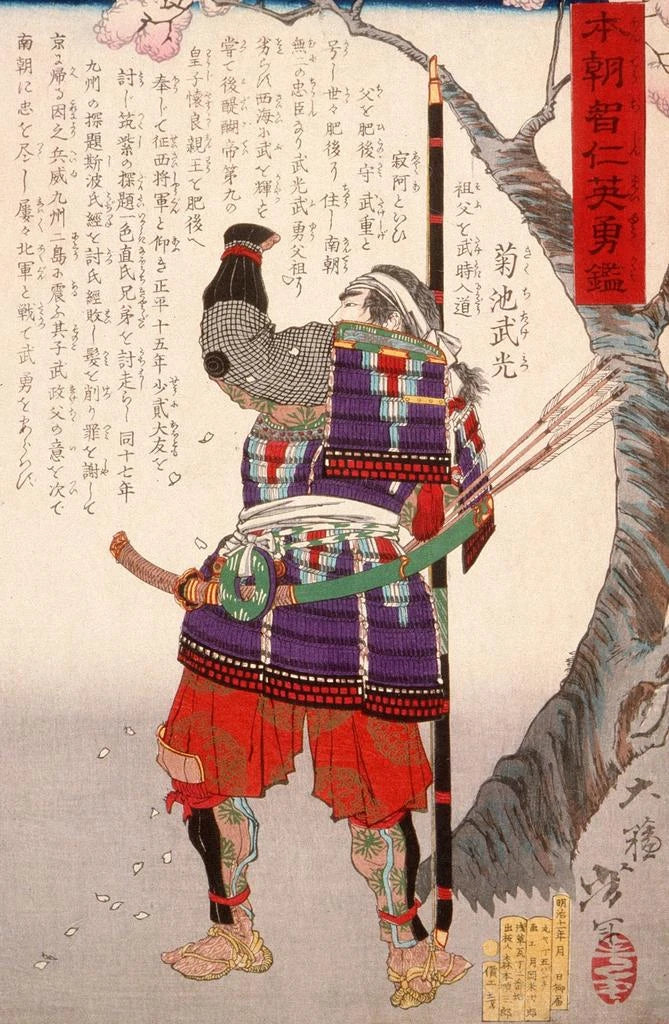 Art print | Kikuchi Takemitsu standing near a cherry blossom - Tsukioka Yoshitoshi