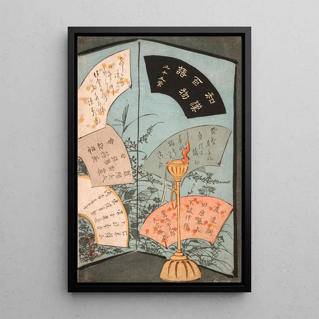 The art print of the Title Page by Tsukioka Yoshitoshi evokes a world where beauty and melancholy meet. The vibrant colors and meticulous details of this piece capture the essence of Japanese ukiyo-e prints, where each stroke tells a story. The ukiyo-e technique, which means "images of the floating world," is highlighted here, creating an atmosphere that is both serene and captivating. The delicate motifs and elegant characters immerse the viewer in a poetic universe, inviting contemplation and escape.