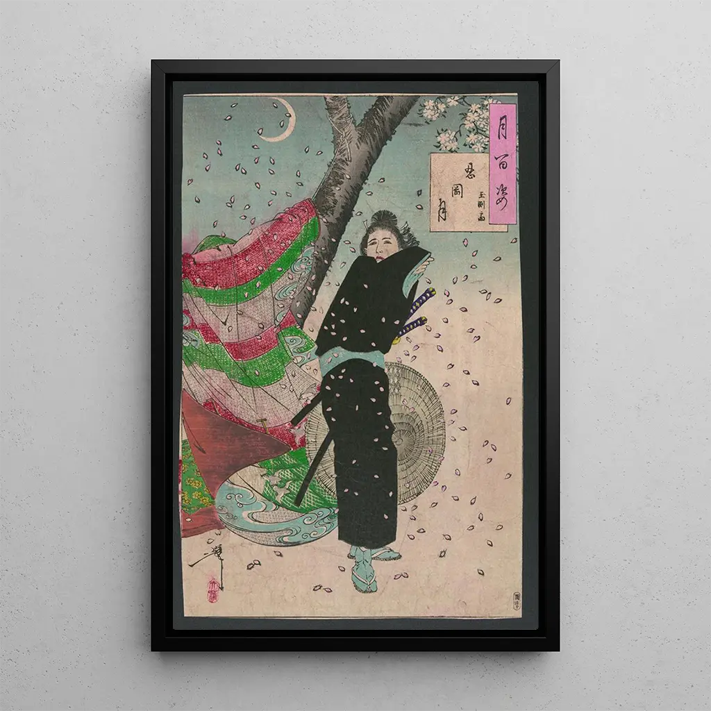 Shinobugaoka no tsuki, œuvre emblématique de Tsukioka Yoshitoshi, évoque la magie de la nuit japonaise. La composition délicate et les teintes douces de l'estampe créent une ambiance paisible, presque mystique. Les nuances de bleu et d'argent illuminent le paysage, tandis que la lune, majestueuse, semble veiller sur la scène. La technique raffinée de l'ukiyo-e permet de rendre hommage à la beauté éphémère de la nature, invitant le spectateur à s'immerger dans cette atmosphère contemplative. Cette art print du tableau Shinobugaoka no tsuki est une véritable invitation à la rêverie.