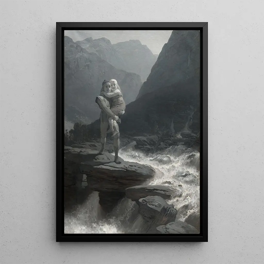 "Frithiof and Ingeborg" is a work that evokes the passion and melancholy of a mythic love. In this art print, August Malmström depicts a romantic scene inspired by the Nordic legend, where the two protagonists meet in an enchanting natural setting. The soft colors and delicate details create a poetic atmosphere, transporting the viewer into a world of dreams and deep feelings. The harmonious composition and subtle use of light accentuate the intensity of the emotion, making this art print a true masterpiece of romantic art.