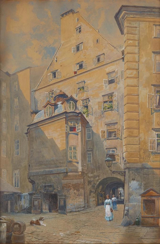 Ludwig Hans Fischer, active at the end of the 19th century, is an artist who captured the essence of Vienna through his works. His style, characterized by meticulous realism and sensitivity to light effects, reflects the aesthetic concerns of his time. Fischer draws inspiration from the transformations of the city, while maintaining a humanist approach in his representations. His paintings, such as "the court of the Trinity in Vienna," testify to a period when art echoed social and cultural changes, while celebrating the beauty of the city's iconic places.