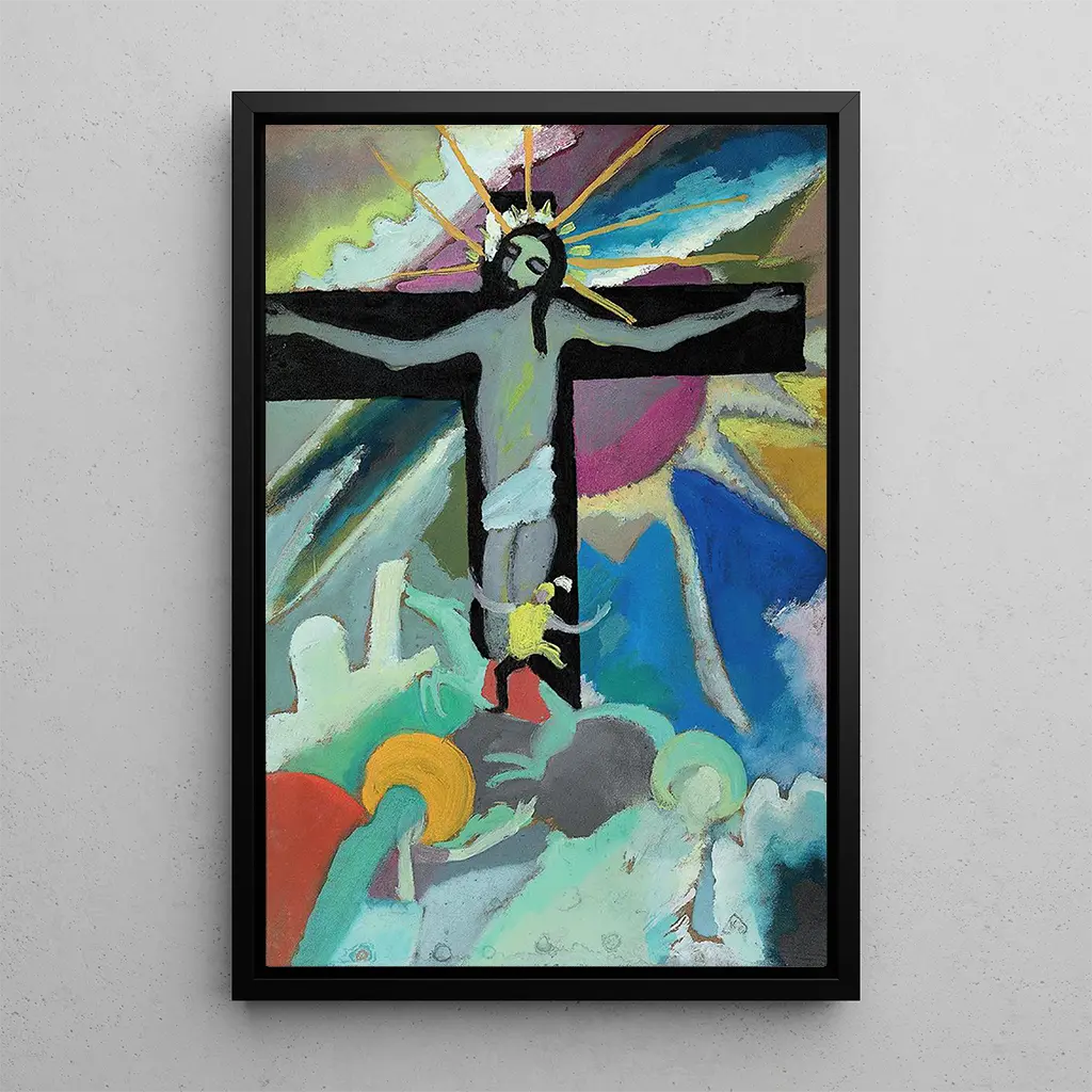 Christ crucifié : une représentation poignante de la souffrance "Christ crucifié" de Wassily Kandinsky est une œuvre chargée d'émotion, où la figure centrale du Christ, suspendue entre ciel et terre, évoque une profonde souffrance. Les couleurs sombres et les formes angulaires renforcent l'intensité dramatique de la scène, tandis que des touches de lumière semblent percer l'obscurité, symbolisant l'espoir et la rédemption. La technique de l'huile sur toile permet à Kandinsky d'explorer des textures riches, créant une atmosphère à la fois tragique et spirituelle qui captive le regard du spectateur. Wassily Kandinsky : un visionnaire de l'expressionnisme Wassily Kandinsky, figure emblématique de l'art moderne, a su marquer son époque par son approche novatrice de la peinture. Né en 1866, il s'illustre dans le mouvement expressionniste, cherchant à traduire des émotions profondes à travers des formes abstraites et des couleurs vives. "Christ crucifié" témoigne de son intérêt pour les thèmes spirituels et religieux, tout en s'inscrivant dans une période de bouleversements artistiques et sociaux. Son œuvre a influencé de nombreux artistes, faisant de lui un pionnier dont l'héritage perdure encore aujourd'hui. Une acquisition décorative aux multiples atouts La reproduction de "Christ crucifié" est un choix idéal pour ceux qui souhaitent apporter une touche de profondeur et de réflexion à leur décoration intérieure. Que ce soit dans un salon, un bureau ou une chambre, ce tableau invite à la contemplation et à la discussion. Sa qualité d'impression assure une fidélité remarquable aux nuances et aux détails de l'œuvre originale, offrant ainsi un attrait esthétique indéniable. En intégrant cette toile dans votre espace, vous créez une ambiance à la fois inspirante et apaisante, tout en rendant hommage à l'un des maîtres de l'art moderne.