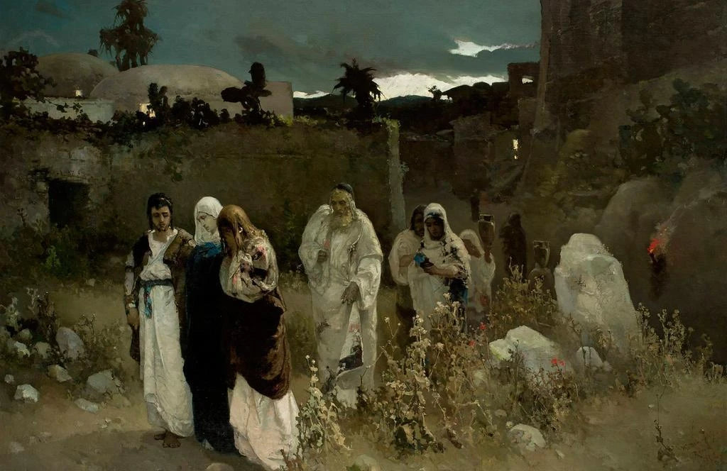 The art print 1879 by Wilhelm Kotarbinski is a fascinating exploration of the interplay of light and color. This painting, imbued with a melancholic atmosphere, uses soft hues and delicate shades to evoke a scene that is both peaceful and emotionally charged. The artist's technique, which skillfully blends realism with an impressionist touch, allows the viewer to be immersed in a moment suspended in time. The meticulous details and subtly crafted shadows give the piece a depth that invites contemplation.