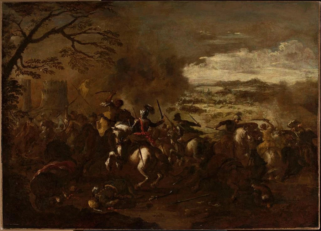 Francesco Simonini, active in the 17th century, is an artist often associated with the baroque movement, characterized by its drama and expressiveness. Influenced by masters such as Caravaggio, Simonini develops a unique style that combines realism and theatricality. Although less known than some of his contemporaries, his work demonstrates great technical skill and a deep understanding of human emotions. By depicting battle scenes, he fits into an artistic tradition that seeks to capture the very essence of the human experience, whether heroic or tragic. His legacy endures through his works, which continue to inspire and fascinate.