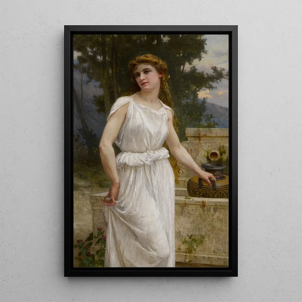 At the Fountain: a moment of serenity and beauty At the Fountain, a delicate art print by Guillaume Seignac, captures a scene imbued with grace and tranquility. The composition highlights a young woman, dressed in a light dress, approaching a fountain, a symbol of purity and renewal. The pastel colors, soft and soothing, create a dreamy atmosphere, while the natural light seems to caress the delicate forms of the female figure. Seignac's technique, characterized by striking realism, invites the viewer to share this moment of serenity, where nature and humanity meet. Guillaume Seignac: the art of feminine beauty Guillaume Seignac, a French painter of the early 20th century, is renowned for his idealized representations of women. Influenced by the academic movement, he skillfully combined tradition and modernity, creating works that celebrate feminine beauty and grace. His style, often compared to that of the Impressionists, is distinguished by a particular attention to detail and light. Seignac captured the essence of femininity, making his works timeless testimonies of French classical art. His work continues to inspire and delight art enthusiasts. A decorative acquisition with multiple advantages The art print of At the Fountain is a decorative piece that will add a touch of refinement to your space. Whether in a living room, office, or bedroom, this painting evokes a peaceful and welcoming atmosphere. Its reproduction quality ensures fidelity to the nuances and texture of the original work, while adding an artistic dimension to your decor. This art print, a true ode to beauty, easily integrates into various interior styles, making it a preferred choice for lovers of art and nature.