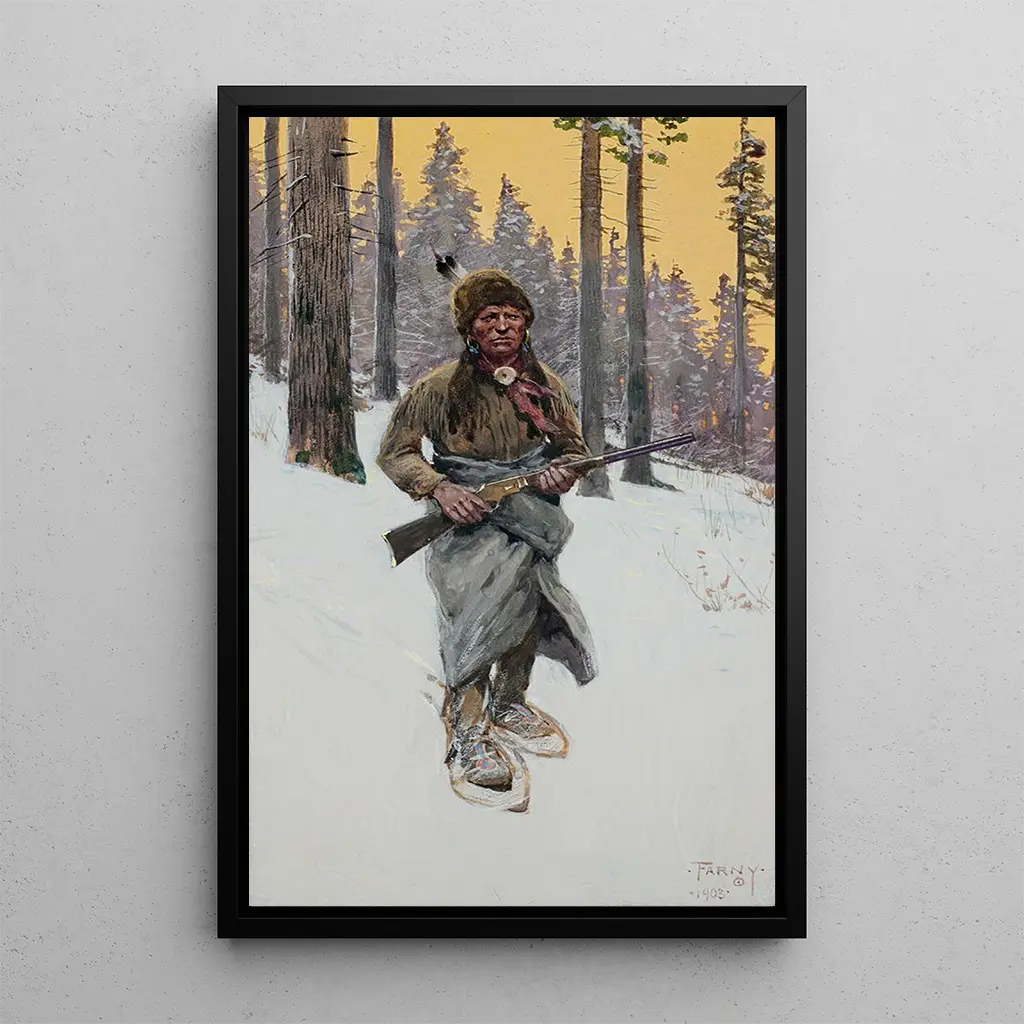 Henry Farny, born in 1847, is an American artist whose work focuses on the life and traditions of Native American peoples. Influenced by his travels across the American West, Farny was able to immortalize scenes of daily life, rituals, and landscapes that testify to a bygone era. His style, often associated with realism, is distinguished by meticulous attention to detail and a rich, nuanced color palette. Through his works, Farny not only documented Native American culture but also helped raise awareness of the beauty and depth of these traditions.