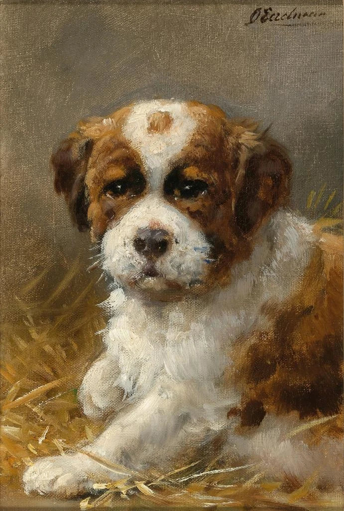 Otto Eerelman, active in the 19th century, is renowned for his portraits of animals, particularly dogs. Influenced by the Romantic movement, he manages to capture not only the physical appearance of his subjects but also their character and essence. Eerelman established himself as a preferred artist for animal lovers, thanks to his ability to render each creature unique and lively. His passion for dogs, especially for majestic breeds like the Saint Bernard, allowed him to create timeless works that continue to move viewers today.
