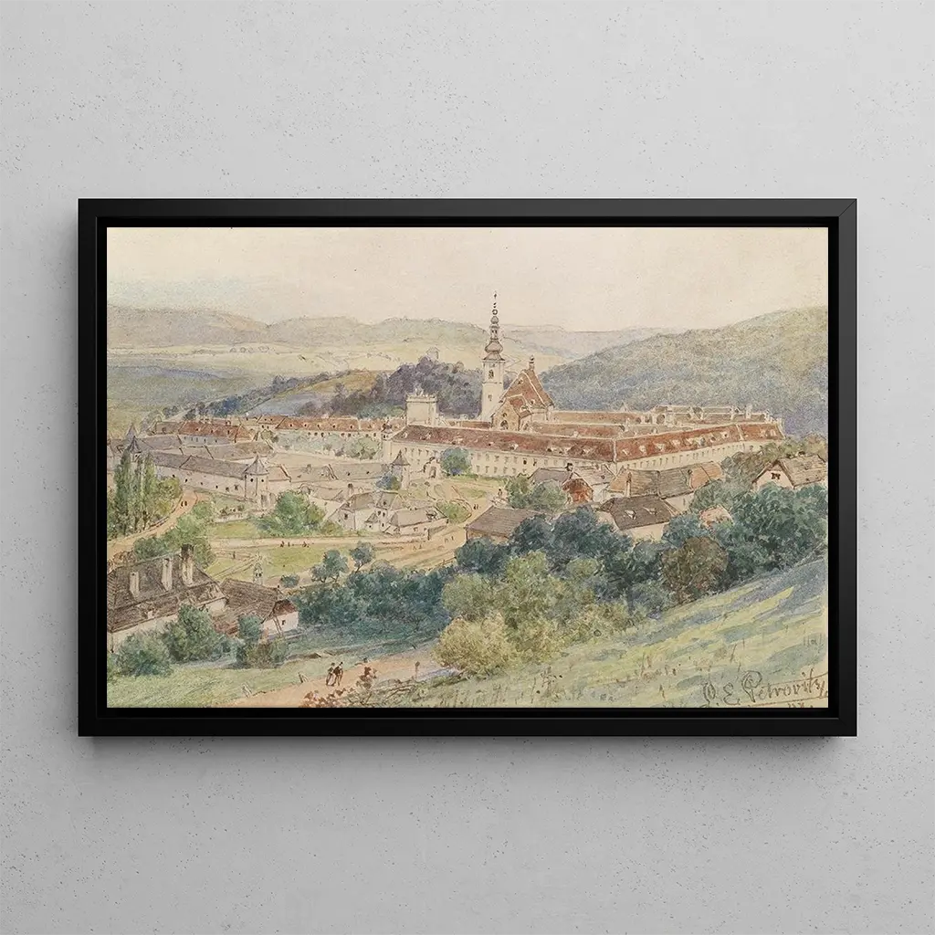 Abbey of Heiligenkreuz: A spiritual journey at the heart of architecture The Abbey of Heiligenkreuz, depicted here through the art print by Ladislaus Eugen Petrovits, invites deep contemplation. The canvas displays shades of beige and green, evoking the serenity of the site. The architectural details, finely crafted, reveal a peaceful and mystical atmosphere. Light plays a crucial role, illuminating the vaults and arches, creating a striking contrast between shadow and light. This work, through its realism and delicacy, transports the viewer to a universe where time seems suspended, offering a spiritual and visual escape. Ladislaus Eugen Petrovits: A master of architectural landscape Ladislaus Eugen Petrovits, active in the early 20th century, is renowned for his representations of historic monuments. Influenced by the Romantic movement, he captured the essence of buildings with remarkable precision. His work is set in a period when Gothic and Baroque architecture was rediscovered, sparking renewed interest in cultural heritage. Petrovits was also influenced by his travels across Europe, allowing him to incorporate diverse elements into his works. The Abbey of Heiligenkreuz is one of many canvases that testify to his talent and his commitment to preserving history through art. A decorative acquisition with multiple assets The reproduction of the Abbey of Heiligenkreuz is an ideal decorative piece for various spaces, whether a living room, office, or bedroom. Its print quality and fidelity to the original colors make it an attractive choice for art and architecture enthusiasts. By integrating this art print into your interior, you bring a touch of serenity and culture, while enriching your decor. The aesthetic appeal of this work lies in its ability to inspire wonder and invite reflection, making this art print a true asset for your living space.