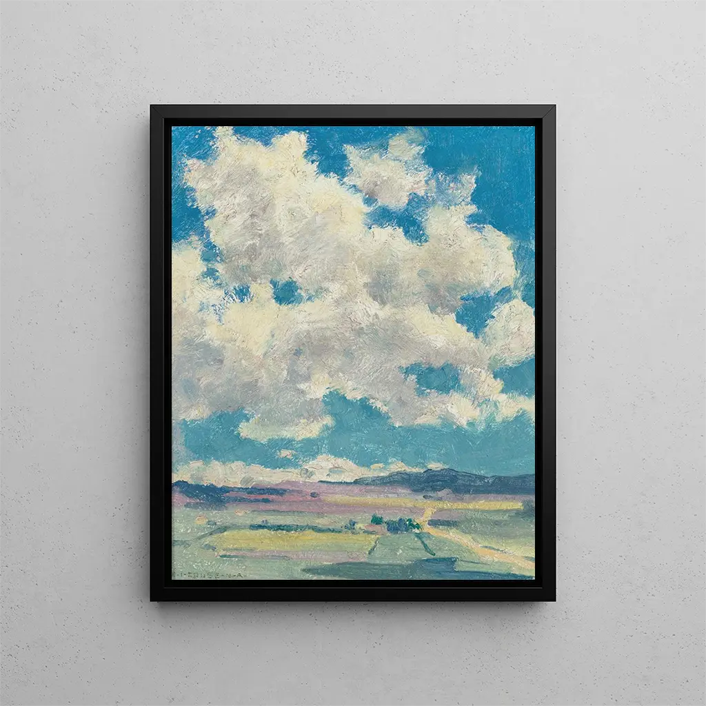 Introduction captivante The artwork "Above the Taos Valley" by Eanger Irving Couse is a true ode to the natural beauty and culture of Indigenous peoples of America. Painted in the early 20th century, this piece transports the viewer to an enchanting landscape, where majestic mountains blend with an infinitely deep sky. Couse, through his brushwork, manages to capture the very essence of the Taos Valley, a place that has inspired many artists and writers. The light, colors, and shapes combine to create an atmosphere that is both serene and vibrant, inviting introspective contemplation. The art print of this work allows you to rediscover this magic and experience it within your own living space. Style and uniqueness of the work Eanger Irving Couse's style is distinguished by its impressionist approach, where light plays a central role. In "Above the Taos Valley," Couse uses fluid brushstrokes and rich color palettes to depict the nuances of nature. Warm, earthy tones evoke the warmth of the setting sun, while the shadows of the mountains add a depth and dimension that seem almost tangible. The artist succeeds in establishing a dialogue between the sky and the earth, creating a visual harmony that captivates the eye. The balanced composition, with its gentle lines and organic shapes, invites visual exploration, where each detail tells a story. Couse manages to transcend simple representation to offer a sensory experience, an immersion into a world where nature and the human spirit meet. The artist and his influence Eanger Irving Couse, born in 1866, is one of the pioneers of the Taos Artists movement, a group of artists who sought to capture the spirit of the American Southwest. His work is deeply influenced by his fascination with Native American culture, which he had the opportunity to explore during his stays in Taos. Couse was able to establish a bridge between artistic representation and the reality of the lifestyles of Indigenous peoples, paying homage to their culture while enriching the artistic landscape.