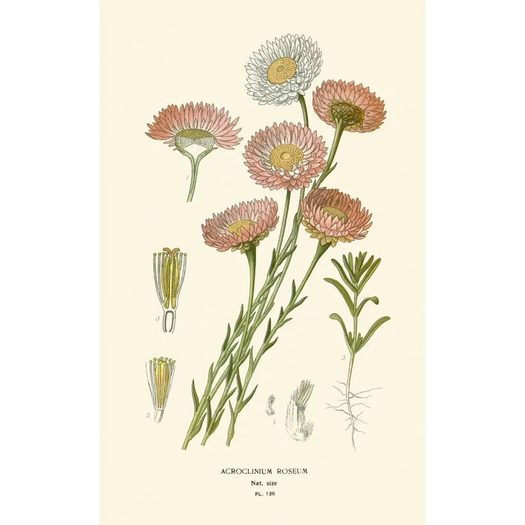 Acroclinium roseum : an explosion of colors and life "Acroclinium roseum" is a vibrant artwork celebrating the beauty of flowers through a palette of dazzling colors. Edward Step, with his mastery of botanical painting techniques, manages to capture every detail of this delicate plant, from the petals to the leaves. The composition is carefully balanced, highlighting the richness of pink and green shades. The atmosphere conveyed by this canvas is both joyful and soothing, inviting the viewer to immerse themselves in a lush floral universe. Every brushstroke seems to breathe new life into this plant, transforming a simple representation into a true ode to nature. Edward Step : a pioneer of botanical art Edward Step, active in the early 20th century, is renowned for his contributions to botanical painting and the illustration of British flora. His work stands out for its attention to detail and scientific approach, reflecting his love for nature. Influenced by the artistic movements of his time, Step skillfully combined rigor and aesthetics, creating works that are both informative and visually captivating. "Acroclinium roseum" is a perfect example of his talent, where he succeeds in blending botanical precision with artistic sensitivity. His legacy endures, inspiring art and botany enthusiasts around the world. A decorative acquisition with multiple advantages The art print of "Acroclinium roseum" is an ideal choice to enhance your living space, whether in a kitchen, living room, or office. Its print quality and fidelity to the original artwork guarantee a striking visual rendering. This piece, with its vivid colors and realistic depiction, brings a touch of freshness and vitality to your decor. By integrating this canvas into your interior, you create a warm and welcoming atmosphere while celebrating the beauty of nature. Its aesthetic appeal makes it an essential element for flower and art lovers.