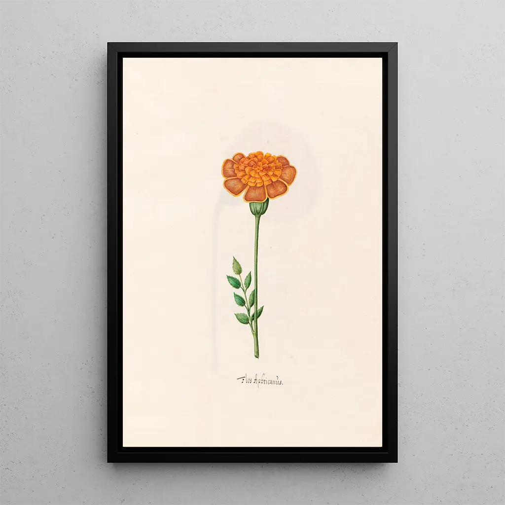The art print of Fleur d'Afrique, a work by Magdalena Rosina Funck, evokes an explosion of colors and shapes that celebrate botanical diversity. The vibrant shades of yellow and orange intertwine with nuances of green, creating a harmonious and dynamic composition. Funck's technique, combining precision and sensitivity, allows viewers to feel the warmth and energy of this iconic flower. Every detail, from petals to leaves, is rendered with care, inviting the observer to appreciate the beauty and complexity of nature.